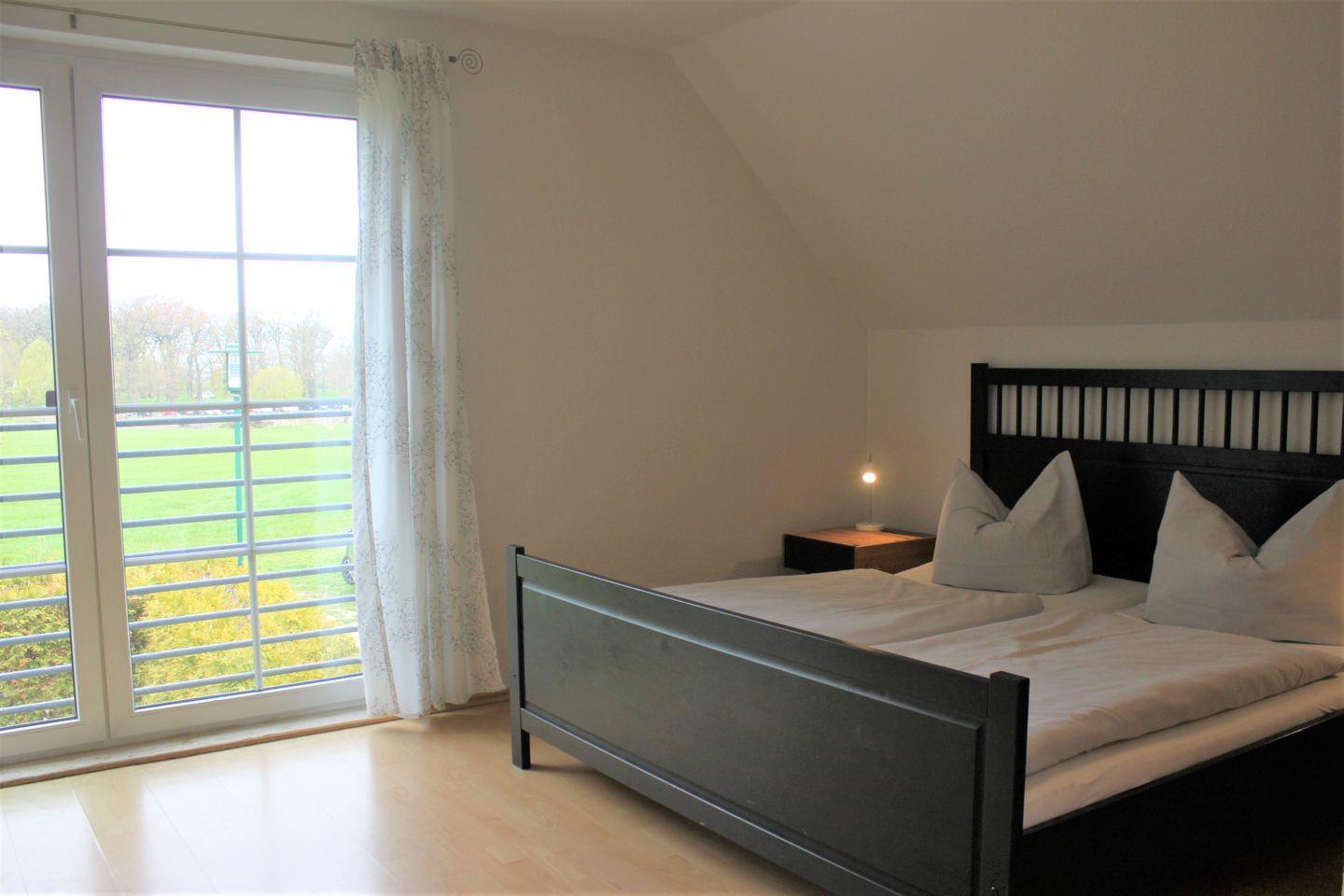 Über eine Treppe gelangen Sie in die obere Etage des Hauses, wo sich die drei separaten Schlafzimmer befinden. Ein Schlafzimmer ist mit einem Doppelbett, Klappliege, Kleiderschrank und zusätzlichem TV-Gerät möbliert. Ein Zimmer verfügt über zwei Einzelbetten, ein Zimmer ist mit einem Einzelbett ausgestattet. Es gibt ausreichend Stauraum für Ihre Garderobe.