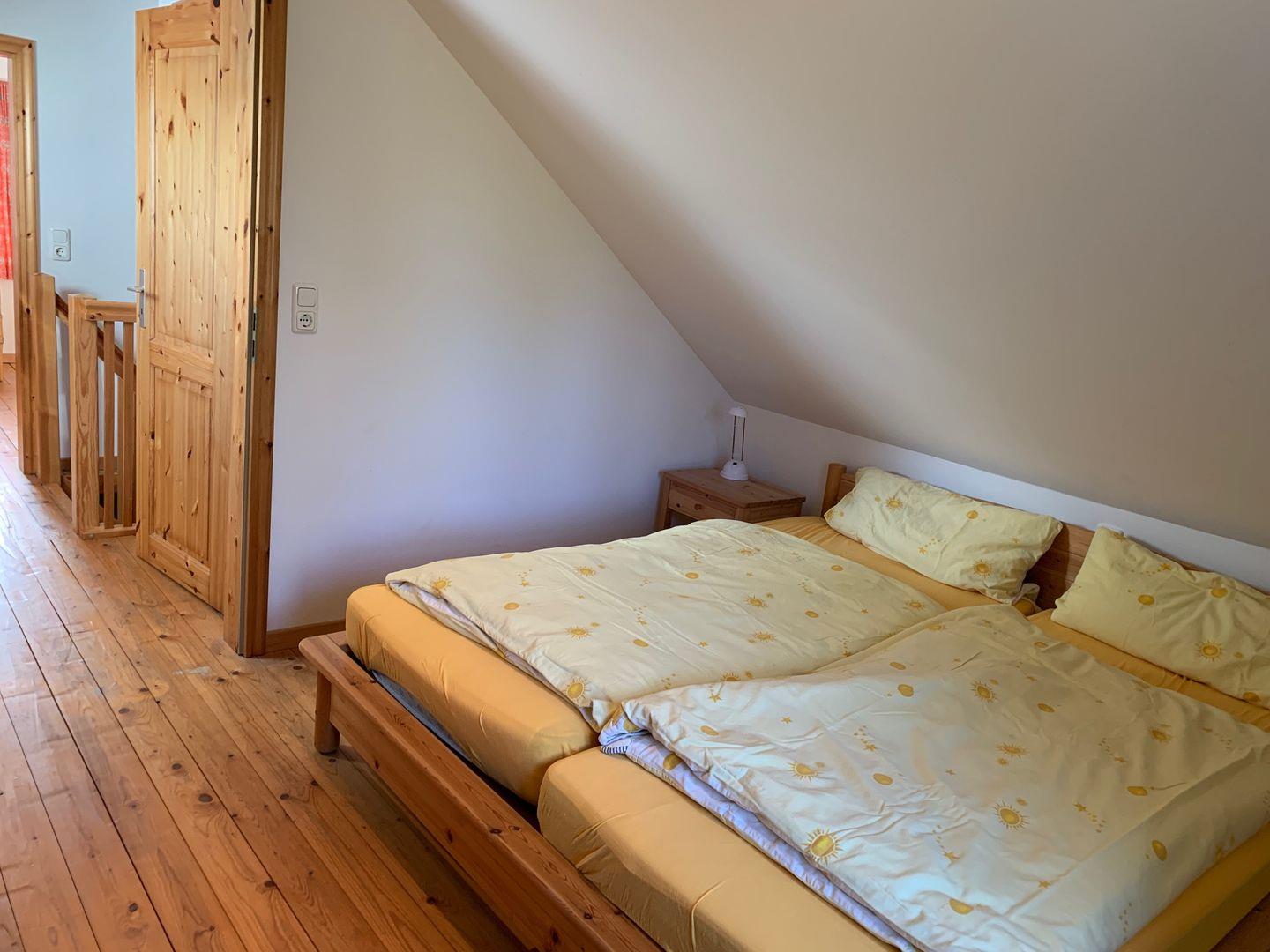 Das Haus verfügt außerdem über drei separate Schlafzimmer für erholsame Nächte. Zwei Zimmer mit jeweils zwei Einzelbetten und ein Zimmer mit einem Doppelbett.