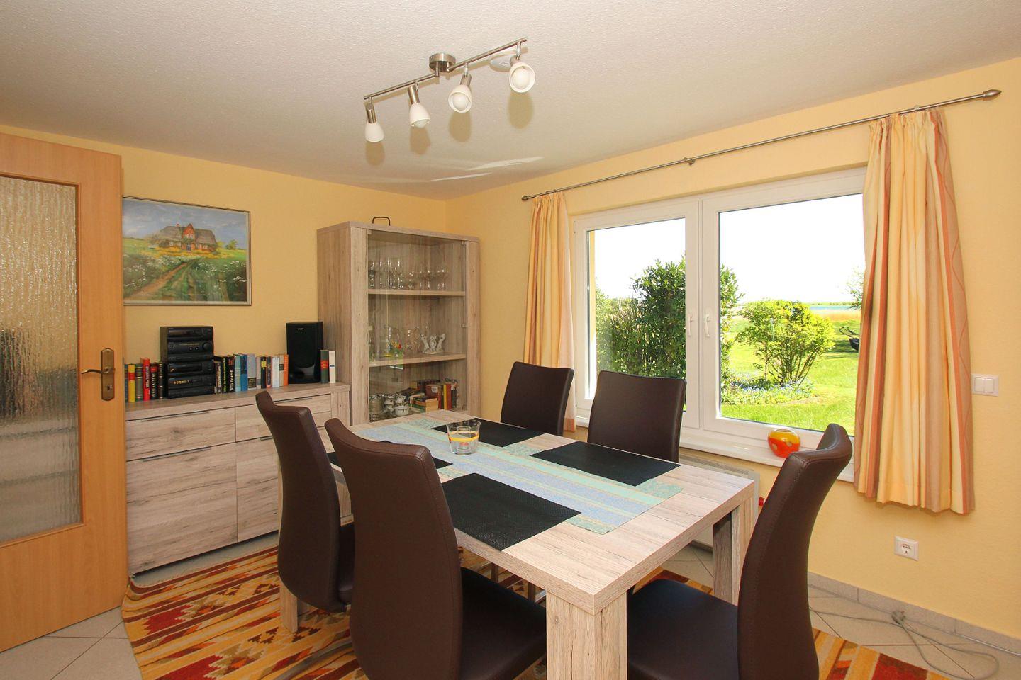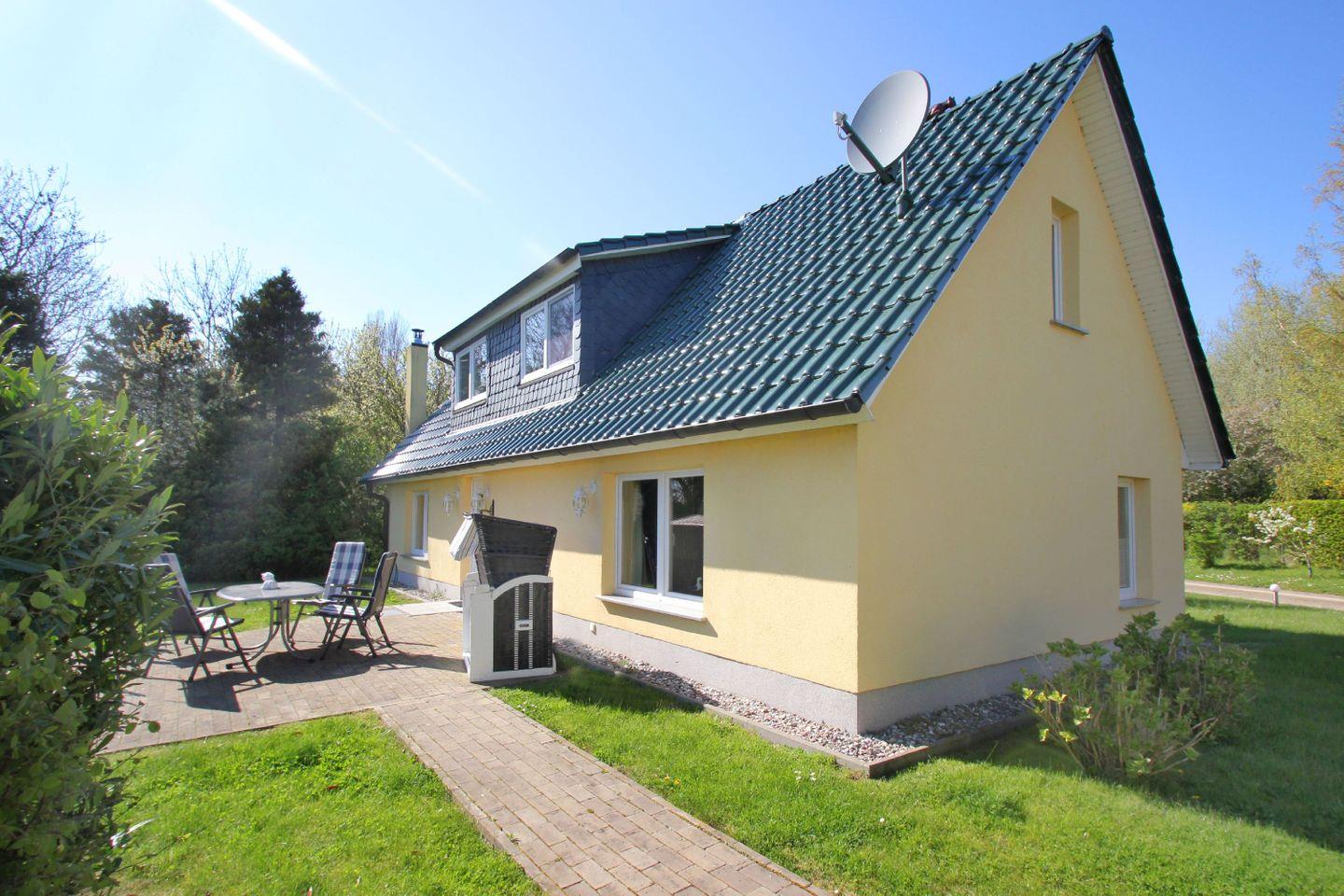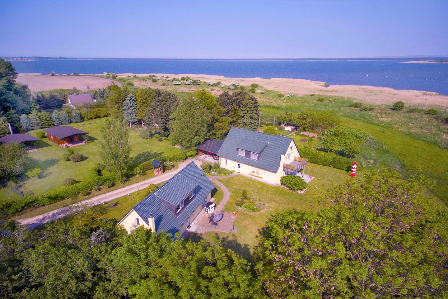 Das Ferienhaus bietet alles für einen gelungenen Rügen-Urlaub. Auf der Terrasse können Sie entspannen und an lauen Sommerabenden den Grill befeuern. Im großen Wohnzimmer steht eine bequeme Couch-Combi, ein Flachbild-TV sowie ein Kamin. Im Esszimmer genießen Sie beim Blick auf den Bodden. Ihre Speisen, die Sie in der voll ausgestatteten separaten Küche gezaubert haben. Die Schlafzimmer, eins mit Doppelbett und eins mit zwei Einzelbetten, befinden sich in der oberen Etage.