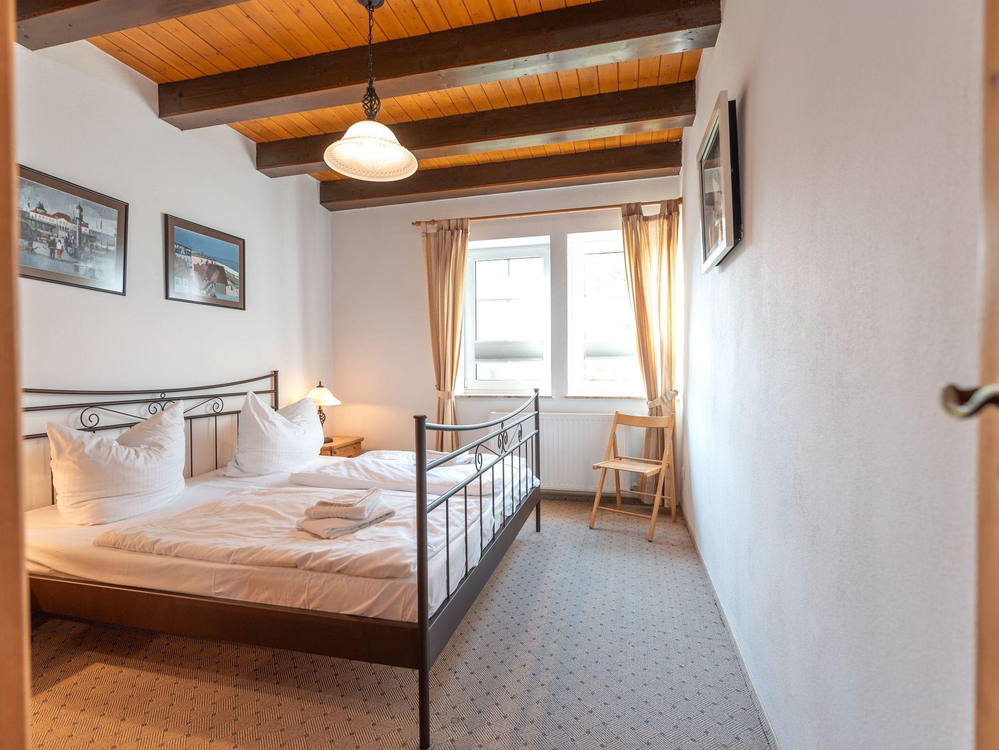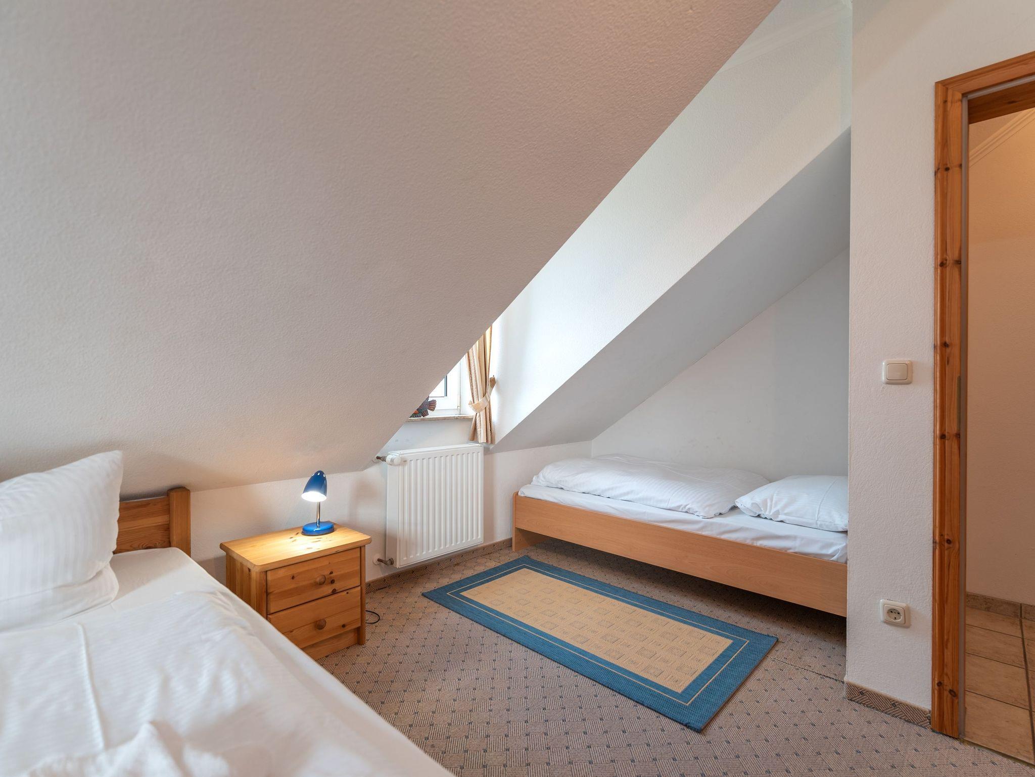 • Schlafzimmer 2 mit einem Doppelbett und einem Einzelbett