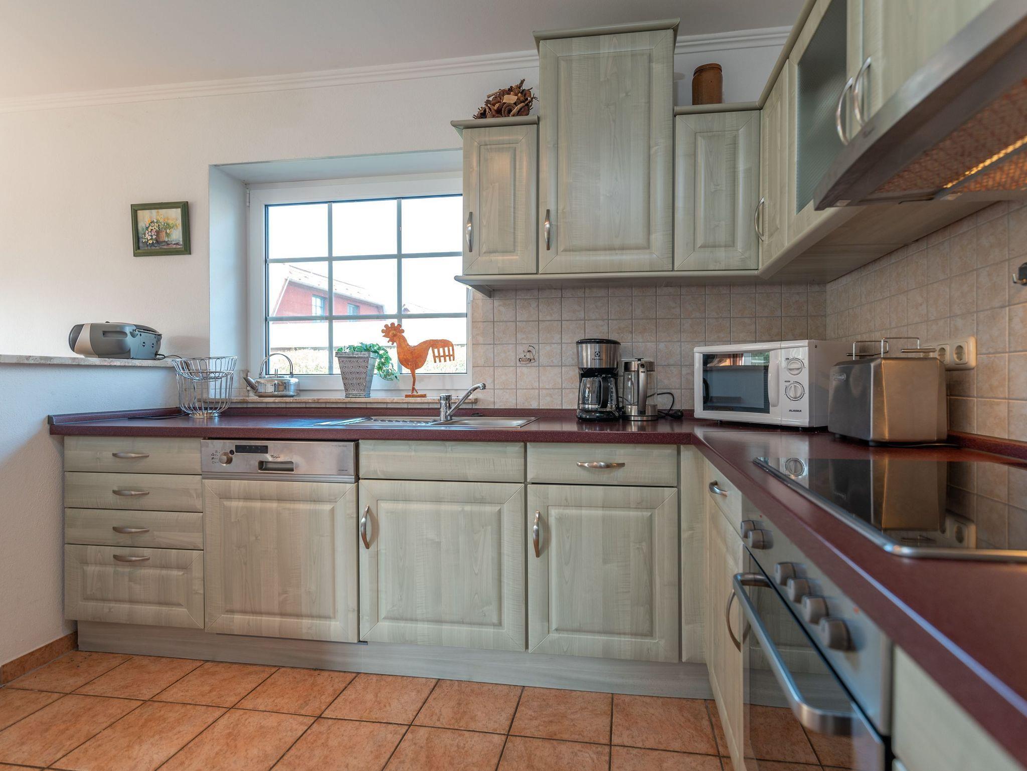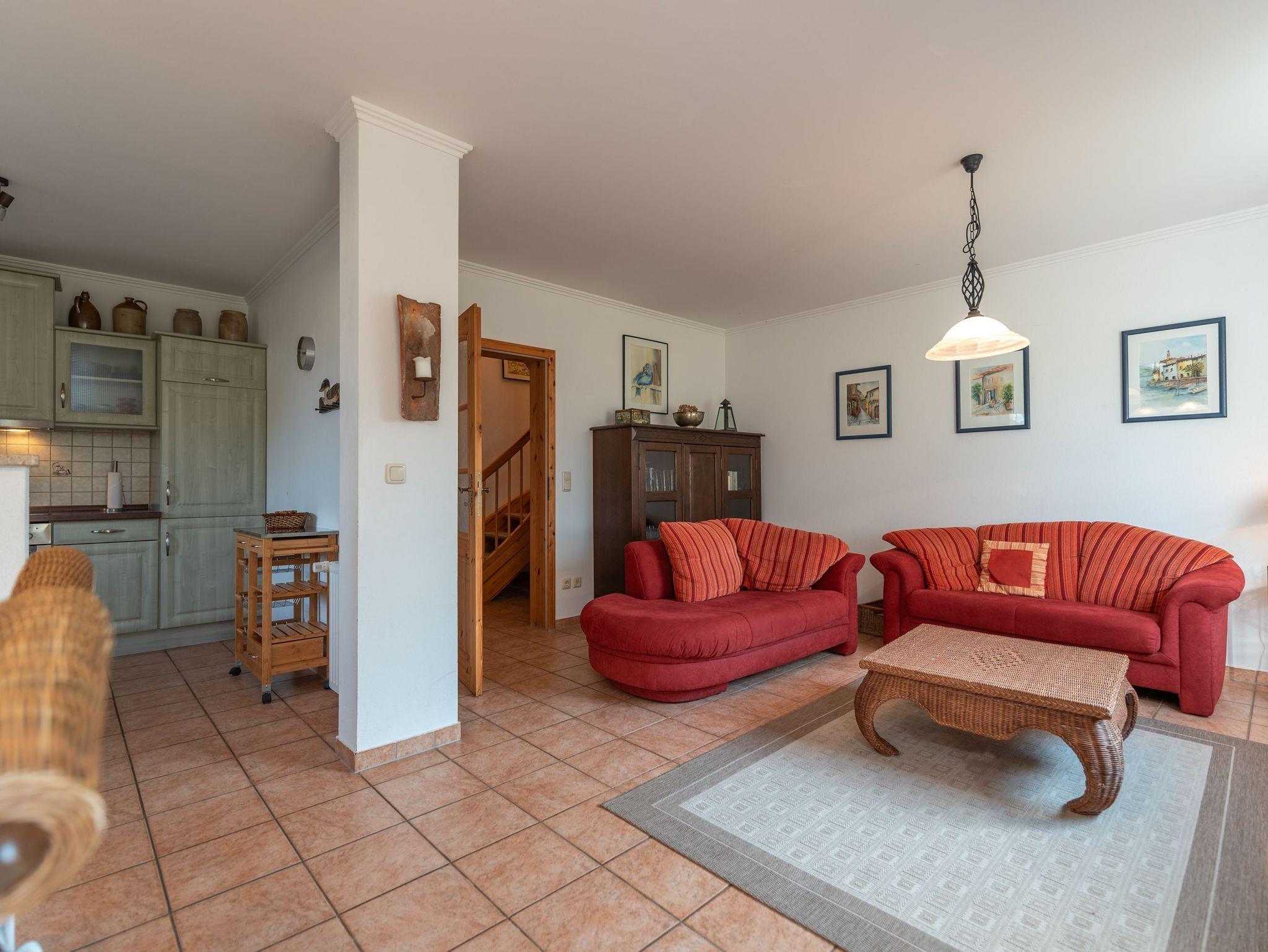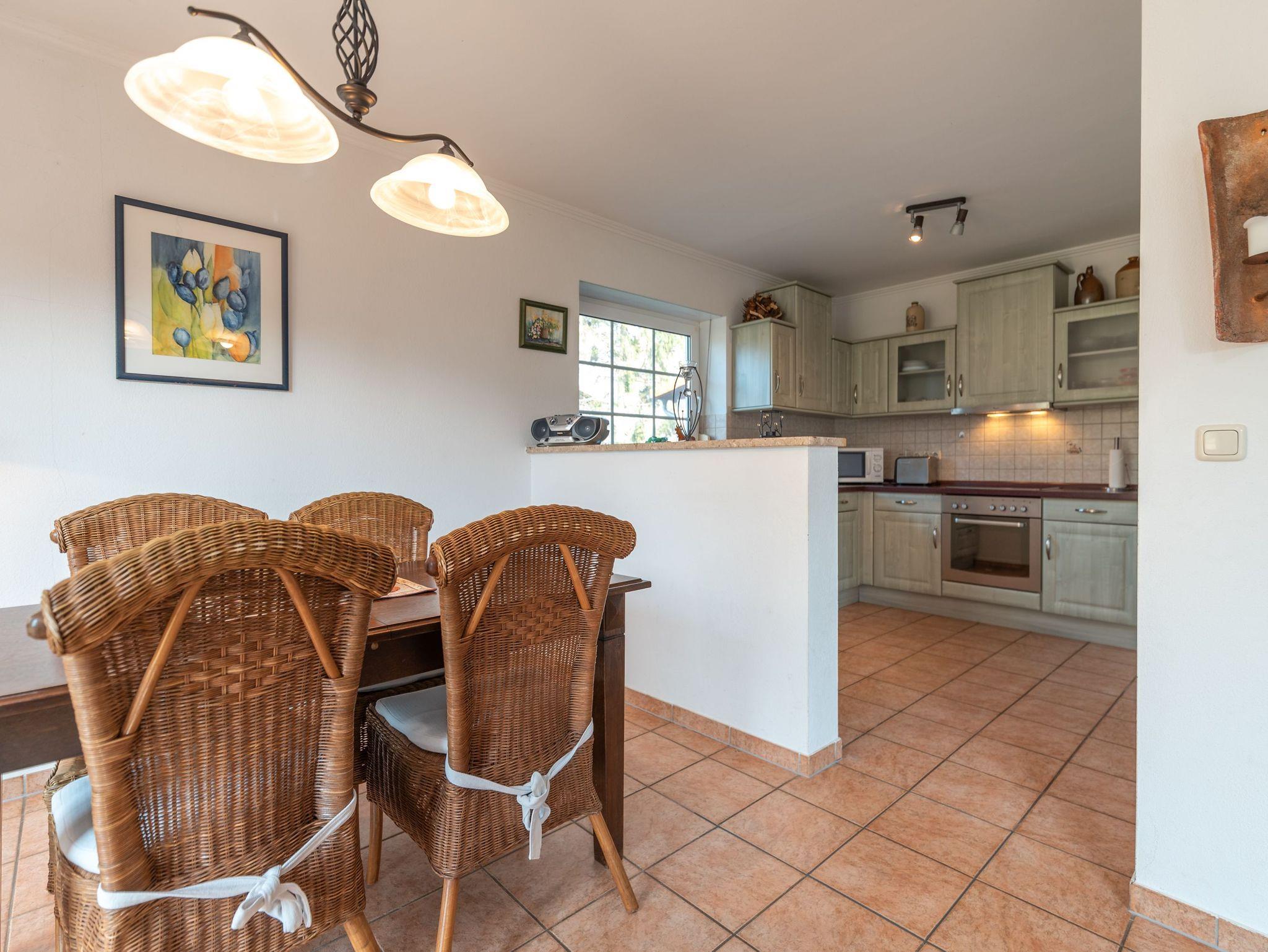 Das Ferienhaus, verteilt über zwei Etagen, bietet mit seinen zwei Schlafzimmern genügend Raum für bis zu 5 Erwachsene und ein Baby. Es umfasst ein Badezimmer mit Dusche und WC sowie ein zusätzliches Gäste-WC, das den Komfort während Ihres Aufenthalts erhöht. Im Erdgeschoss lädt der Wohnbereich mit einer gemütlichen Couchecke und TV zum Verweilen ein, während der angrenzende Essbereich und die voll ausgestattete, offene Küche zum gemeinsamen Kochen und Genießen anregen. Eine Terrasse mit Blick ins Grüne bietet den perfekten Rahmen, um in der Sonne zu entspannen oder den Tag bei einem Glas Wein ausklingen zu lassen.