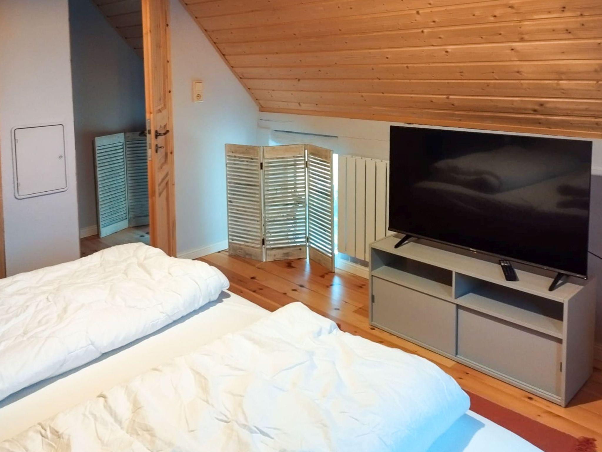 Das liebevoll eingerichtete Haus bietet eine gemütliche Küche mit Esstisch und ein Badezimmer im Erdgeschoss. Im Obergeschoss finden Sie ein Schlafzimmer mit Doppelbett und ein Wohnzimmer mit Einzelbett. Ein kostenfreier Parkplatz steht zur Verfügung, und Hunde sind erlaubt, dürfen sich jedoch nur im Erdgeschoss aufhalten. Nur 10 Gehminuten vom Hafen und etwa 30 Minuten mit dem Fahrrad zur Ostsee entfernt, ist Vincents Scheune der ideale Rückzugsort für Ihren Urlaub. Wäschepakete können gegen Gebühr hinzugebucht werden. Genießen Sie Ihren Aufenthalt!
