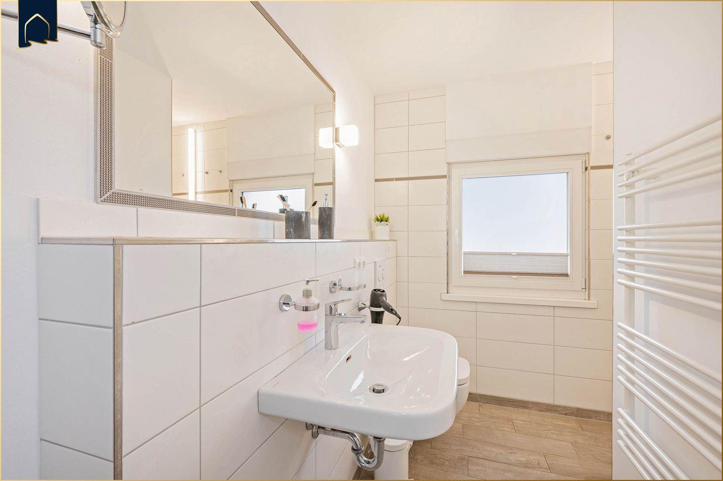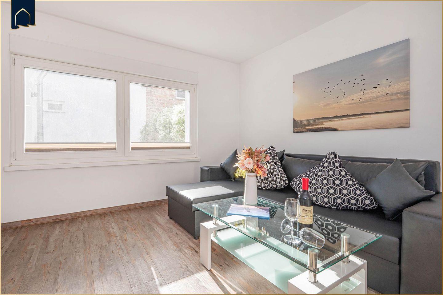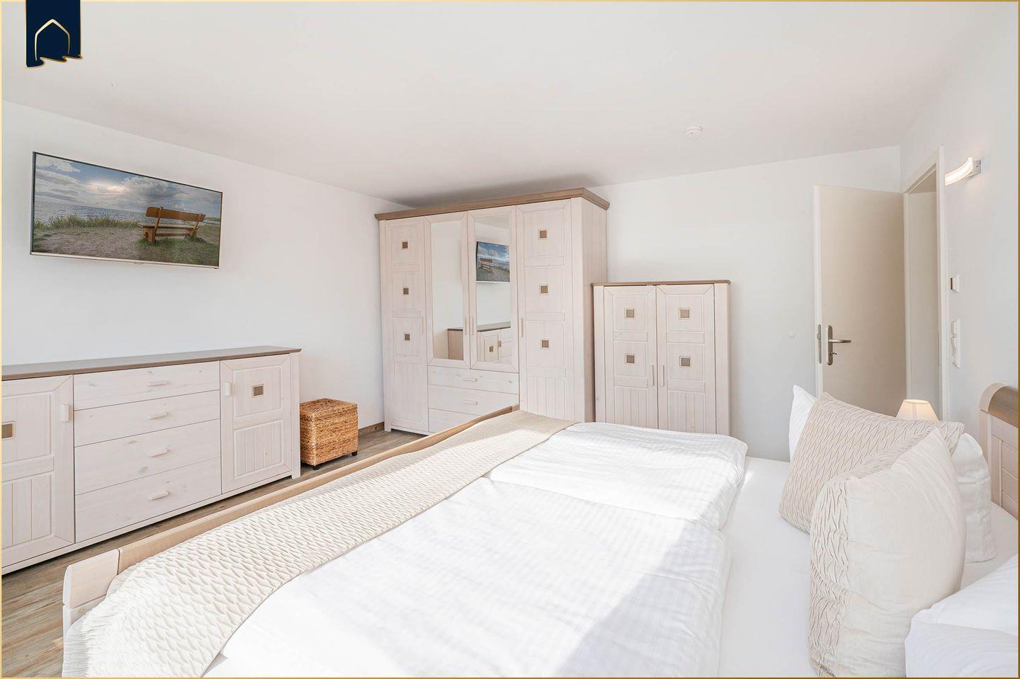 Die Ferienwohnung überzeugt durch eine moderne und voll ausgestattete Küche mit Herd, Backofen, Mikrowelle, Kühlschrank mit Gefrierfach, Geschirrspüler, Toaster, Wasserkocher und Kaffeemaschine. Hochwertige Küchenutensilien sowie Geschirr, Besteck und Geschirrhandtücher sind selbstverständlich vorhanden. Das helle Badezimmer verfügt über eine Dusche, WC, Waschbecken, Haartrockner, Kosmetikspiegel sowie einen Ganzkörperspiegel. Fliegengitter, Sichtschutz an allen Fenstern und ein Schuhschrank sorgen für zusätzlichen Komfort. Zwei Fernseher, WLAN, Staubsauger und Heizung runden die Ausstattung ab.