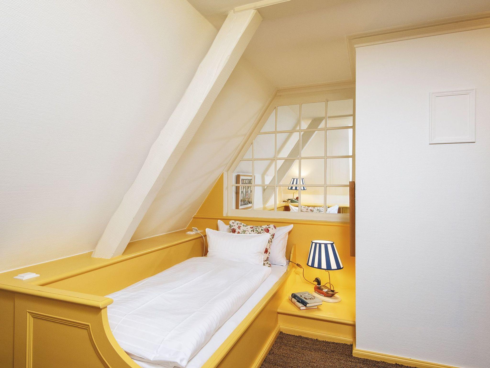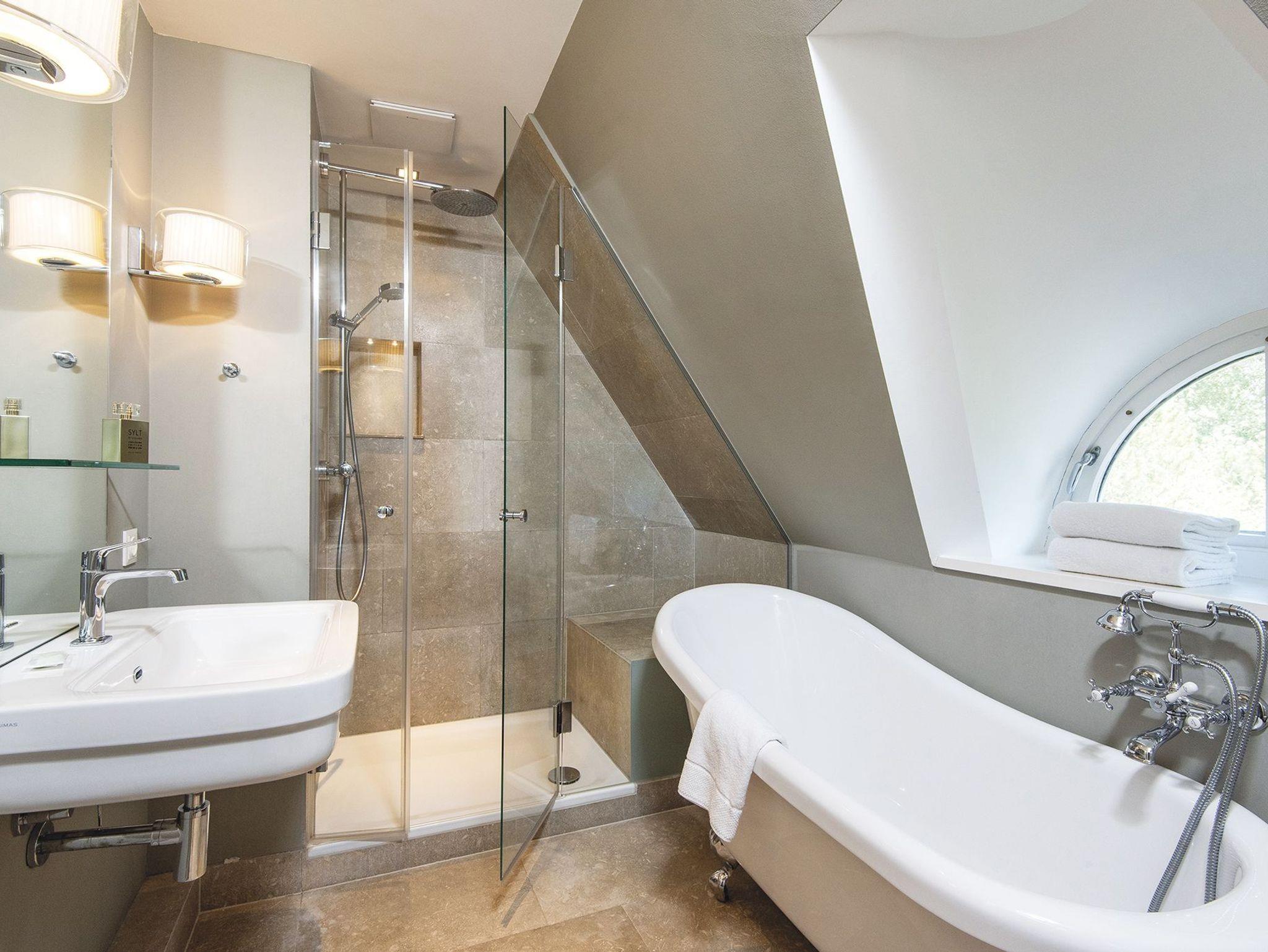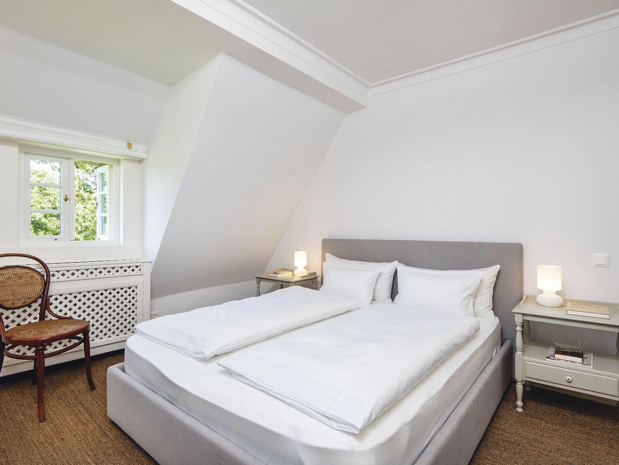 In einem traumhaft eingewachsenen Garten liegt dieses wunderschöne Hausteil klassisch unter Reet. Sehr individuell und harmonisch zusammengestellt sind antike Einbauten mit Neuem kombiniert. Im Erdgeschoss finden Sie eine heimelige Küche in friesischblau mit Delfter Kacheln und modernen Elektrogeräten. Ein schöner Essbereich mit Blick in den Garten und Zugang zur Terrasse lädt zum geselligen Frühstückstreff mit der gesamten Familie ein. Das Wohnzimmer mit gemütlichen Sofas vor dem Kamin und hübscher Leseecke an der Fensterfront, sowie ein Gäste-WC befinden sich ebenfalls auf dieser Ebene. Im Obergeschoss sind zwei Doppelschlafzimmer, sowie ein Duschbad und ein Wannenbad. Die Farbkombination in den Schlafzimmern geht von modernen Grautönen hin zu den Schrankeinbauten in Korallenrot, kombiniert mit Messing - einfach stilvoll. Noch ein Stockwerk höher finden Sie ein kuscheliges Dachzimmer mit zwei Einzelbetten. Die Treppen und Schlafräume sind mit Teppichboden ausgelegt.
