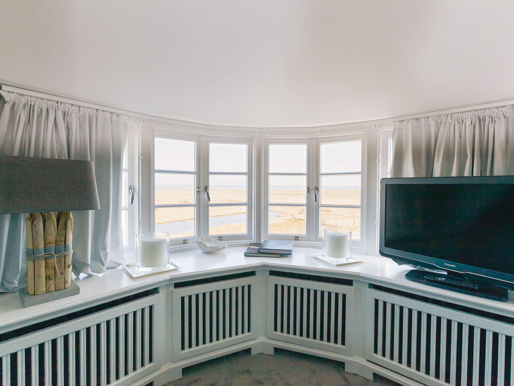 Alleinlage auf der Düne, exklusiv, besonders und wunderschön! Honeymoon-Atmosphäre für zwei Personen - so lässt sich das Watthüs kurz und knapp beschreiben. Über eine Treppe steigen Sie hinauf auf die Düne hoch über das Wattenmeer mit direktem Blick bis weit nach List und Dänemark, dann gelangen Sie über die Terrasse in ein kleines uriges Haus mit runder Fensterfront. Durch die Diele geht es in den Wohnbereich mit offener Küche, Sofalandschaft, Kamin und Rundblick auf das fantastische Wattenmeer. Hier ist der Sonnenaufgang zum Morgenkaffee garantiert. Im Obergeschoss finden Sie ein Alkoven Doppelbett mit Rundblick auf die Salzwiesen und das Watt. Nebenan ein kleines exklusiv ausgestattetes Duschwannenbad. Durch das urige, kleine Treppenhaus hinab in das niedrige Kellergeschoss finden Sie ein weiteres Schlafzimmer mit Grandlit für eine dritte Person, ein Duschbad und ein Gäste-WC. Das Treppenhaus und die Schlafzimmer sind mit Teppichboden ausgelegt. Definitiv ein unvergleichliches Ferienhäuschen - einfach zum