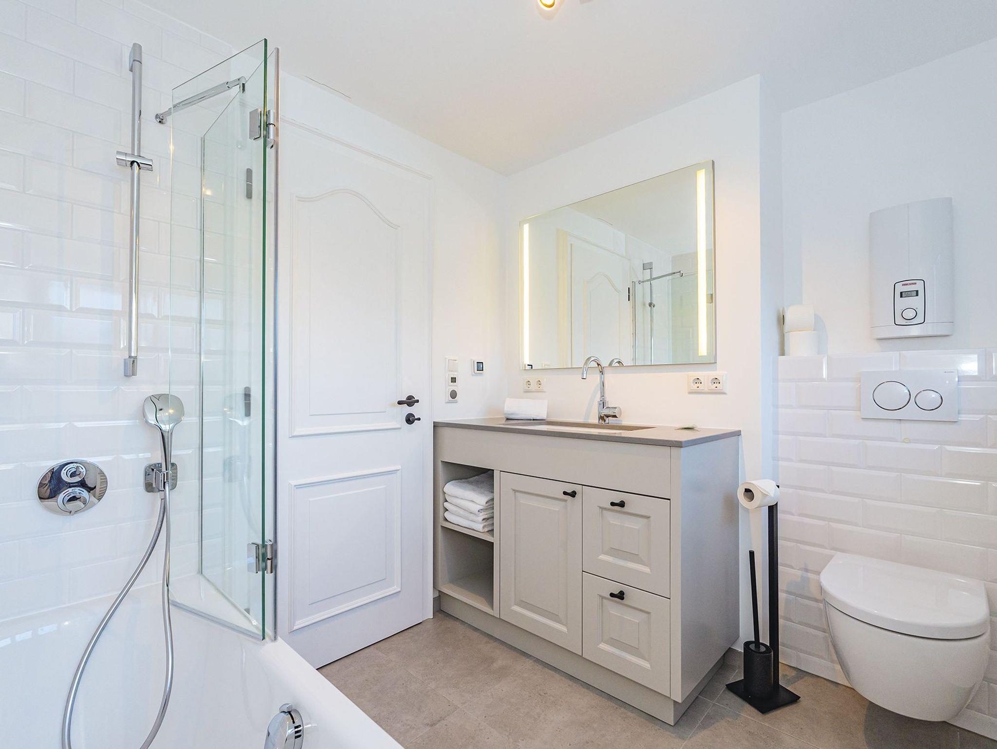 Dieses zauberhafte Quartier für Drei erwartet Sie im 1. OG eines gepflegten Appartementhauses in der Kurhausstraße. Der Eingangsbereich mit Gäste-WC schließt direkt an die elegante offene Küche und den kombinierten WohnEssbereich an. Hier überzeugt sofort der tolle Panoramaausblick über die Kampener Heidelandschaft vom Leuchtturm Langer Christian bis hin zur Uwe Düne, sowie der gemütlich geschützte Südbalkon. Der gleiche schöne Ausblick erfreut im Einzelschlafzimmer mit französischem Bett und Chaiselongue im Obergeschoss des Quartiers. Ein weiteres Schlafzimmer für Zwei und je ein Dusch- und Wannenbad, sowie hochwertige Tischlereinbauten in einheitlichem Stil komplettieren diese Etage. Das gesamte Quartier ist frisch renoviert und verkörpert eine moderne Interpretation des Landhausstils in Grau- und Weißtönen mit schmuckem Holzfußboden.