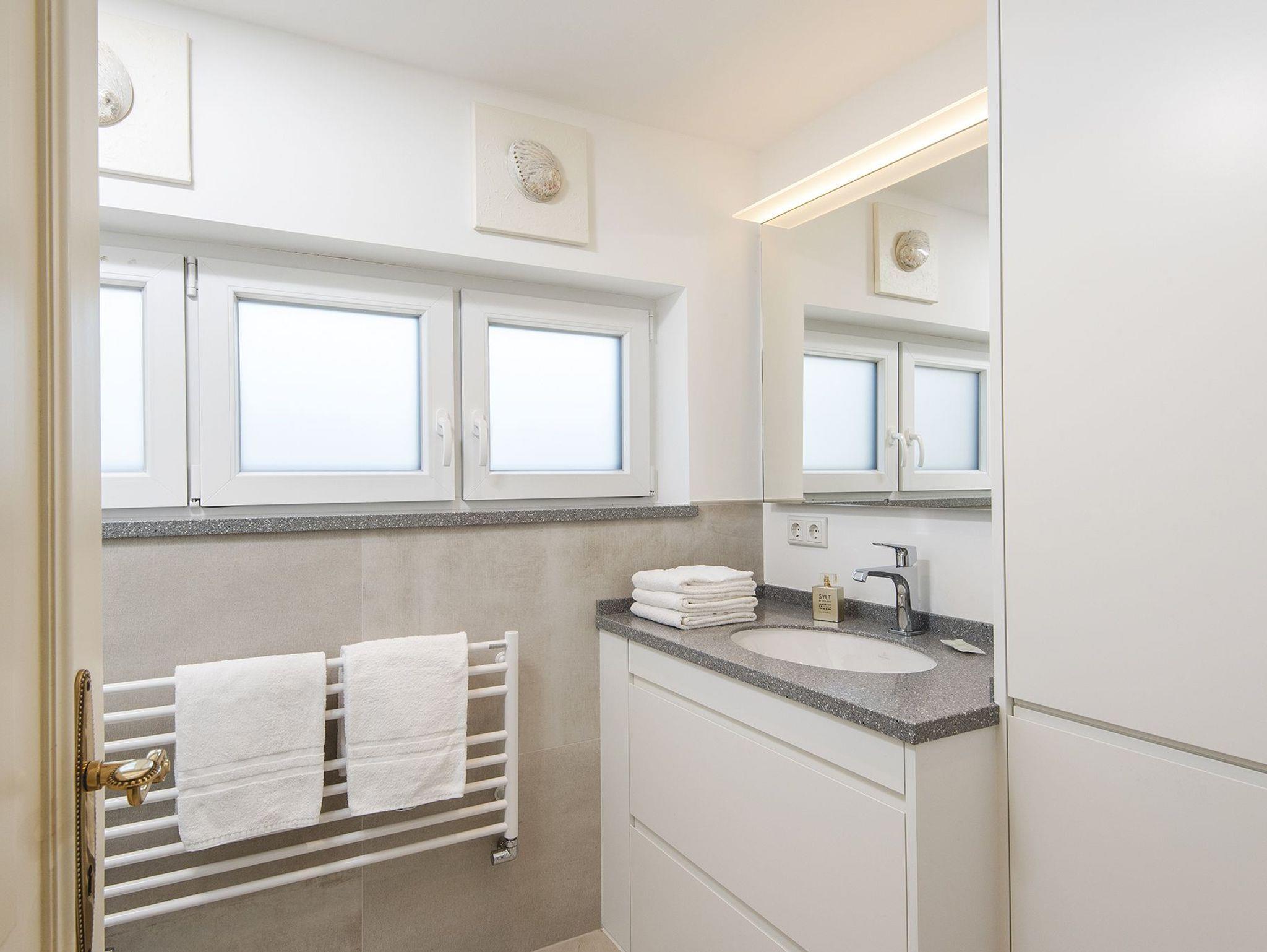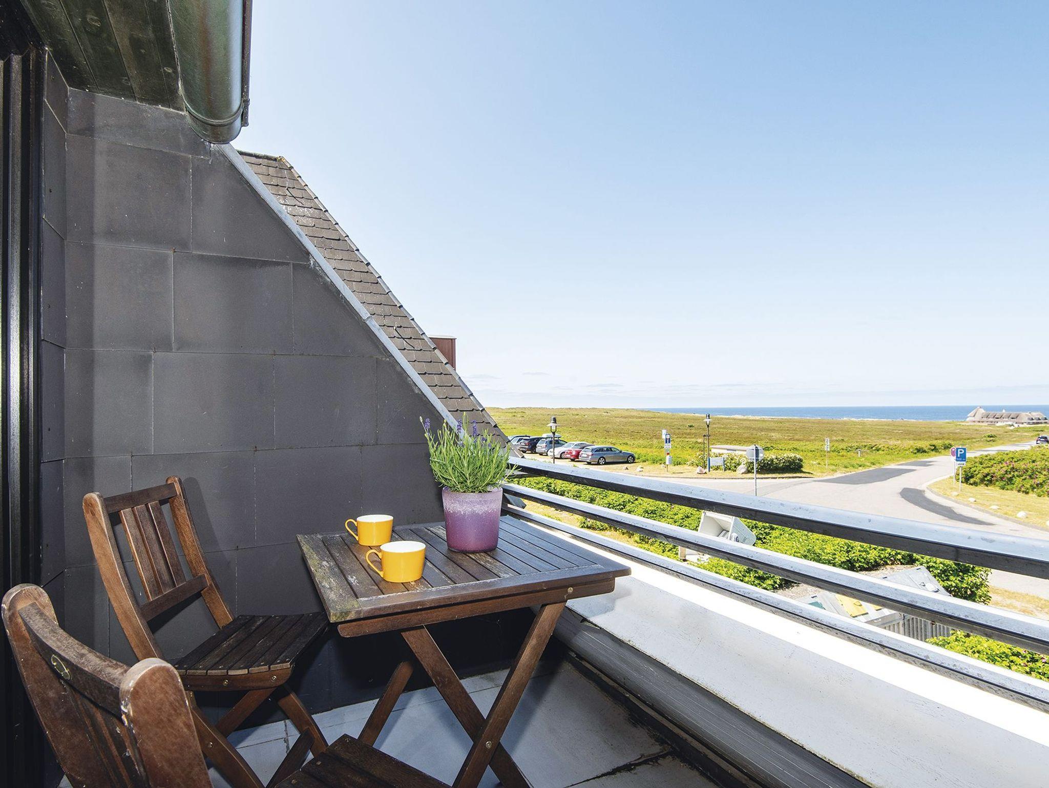 Ein Traumblick über Nordsee, Watt und Heide: Die Wohnung Nautilus 12 befindet sich im ersten und zweiten Obergeschoss eines hochwertigen Appartementhauses auf einem jener seltenen Kampener Grundstücke, die eine Aussicht auf beide Meere erlauben. Im Eingangsbereich mit kleinem Flur liegt auch das Gäste-WC. Das helle mit Laminat ausgelegte Wohnzimmer mit offener Küche besitzt einen Balkon Richtung Meer. Über eine großzügige Wendeltreppe geht es in das lichtdurchflutete Obergeschoss mit einem Doppelschlafzimmer, einem Einzelschlafzimmer und dem frisch renovierten modernen Duschbad.