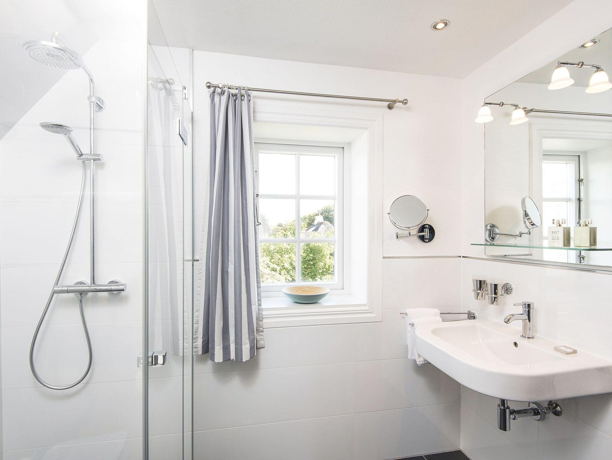Umgeben von einem hübschen Garten, mitten im Dorf und doch ganz ruhig, liegt das Schroeders Haus. Das Hausteil Mitte verfügt über ein eine friesische Stube mit Esstisch und angrenzender separater Küche. Vorbei am Gäste-WC erwarten Sie im Obergeschoss zwei Doppelschlafzimmer, ebenfalls in friesisch-blau. Beide haben einen kleinen Schreibtisch und einen ganz verwunschenen Blick in den Garten. Ebenfalls auf dieser Etage befindet sich ein modernes Duschbad. Zum Quartier gehört auch ein eigener Terrassenplatz im Garten für eine gemütliche Tasse Kaffee in der Sylter Sonne.
