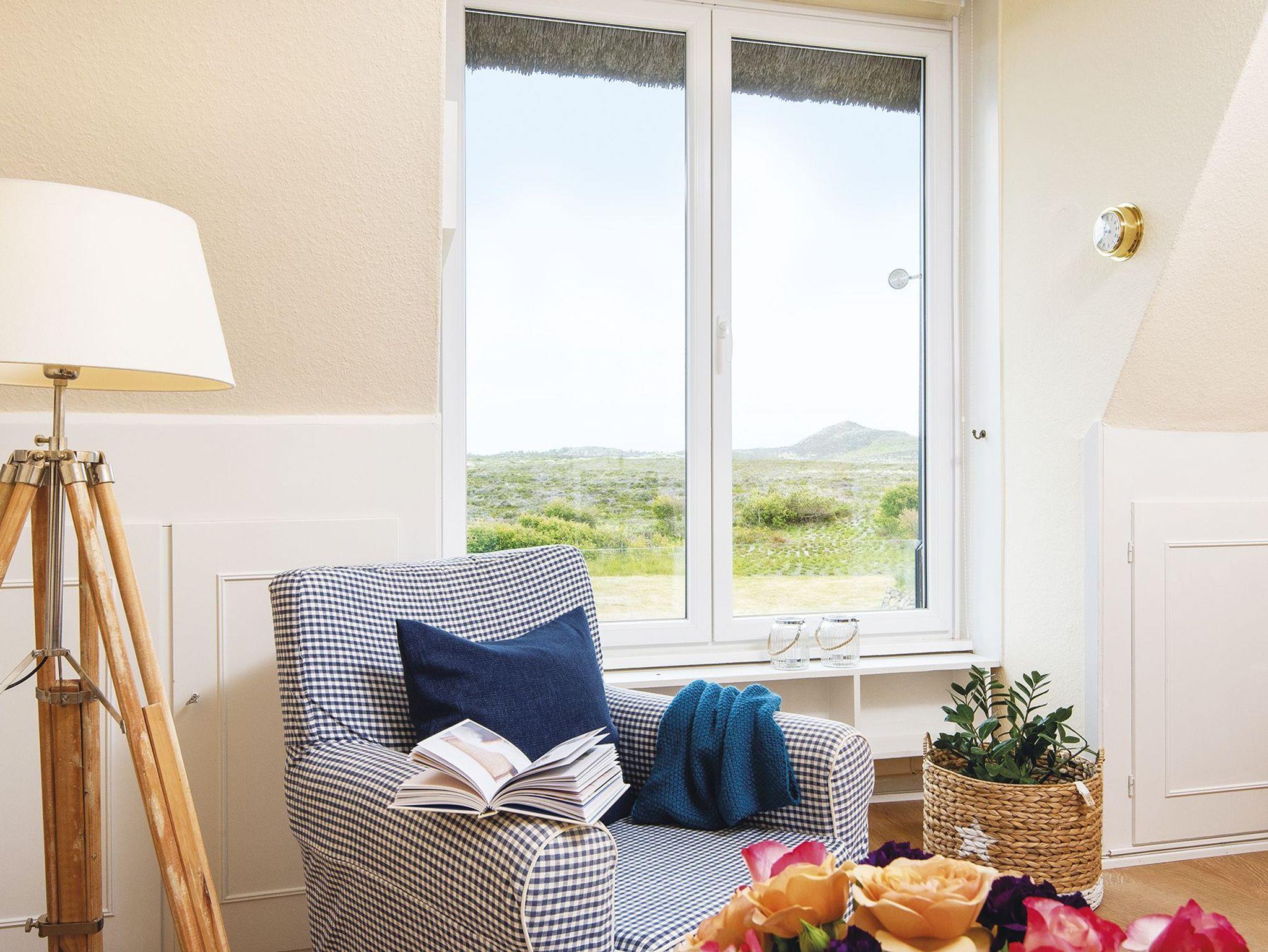 Diese schmucke Etagenwohnung im ersten Obergeschoss eines gediegenen Appartementhauses wartet mit einem freundlich hellen Wohn-/Essbereich samt tollem Ausblick nach Süden über die Dünenlandschaft bis zum Kampener Leuchtturm langer Christian auf. Ebenfalls auf dieser Etage befinden sich die separate funktional eingerichtete Küche und das Duschbad mit einem Waschtrockner. Eine friesisch-schmale Treppe führt hinauf ins gemütliche Schlafzimmer für Zwei mit Einbauschränken unter der Schräge und einer zusätzlichen Sitzecke samt TV. Alle Räume sind mit Fliesen und Laminat ausgelegt, die Treppe hat Teppichboden.