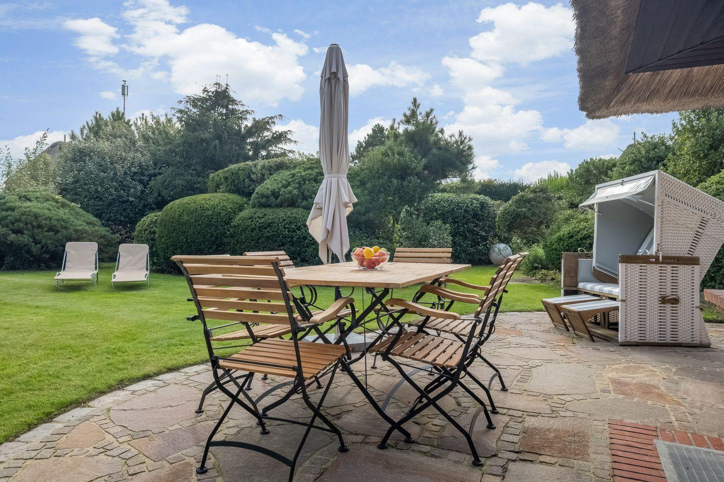 2025 kernsaniertes, exklusives ca. 90 m² großes Ferienhaus unter Reet für bis zu 6 Pers. samt Sauna, Kamin und Garten in idyllischer Lage in Kampen. PKW-Stellplatz, WLAN sowie Strandkorb (saisonabhängig) vorhanden. Haustiere sind willkommen.