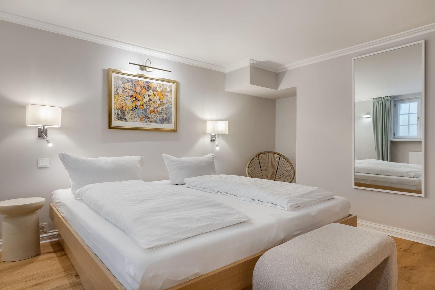 Diese im Jahr 2025 vollständig sanierte, exklusive Hausscheibe unter Reet bietet auf ca. 90 m² eine großzügige Wohnfläche und bietet Platz für bis zu 6 Personen. Die ruhige, idyllische Lage in Kampen stellt den perfekten Ausgangspunkt dar, um sowohl das malerische Watt im Osten als auch die lebendige Innenstadt von Kampen bequem zu Fuß zu erreichen. Im Erdgeschoss empfängt Sie ein lichtdurchfluteter, offener Wohn- und Essbereich, der dank einer beeindruckenden Fensterfront einen herrlichen Blick auf den eigenen Garten freigibt. Die moderne, offene Küche ist mit hochwertigen Geräten bestens ausgestattet. Das Obergeschoss beherbergt ein gemütliches Doppelschlafzimmer sowie ein weiteres Schlafzimmer mit zwei Einzelbetten. Das elegante Tageslichtbad ist mit einer Dusche ausgestattet und bietet alles für eine erfrischende Auszeit. Im Souterrain erwartet Sie ein großzügiges Doppelschlafzimmer, ein zusätzliches Duschbad und ein Wellnessbereich mit einer Sauna – der perfekte Ort, um zu entspannen. Alle Schlafräume und das Wohnzimmer sind mit Smart-TVs ausgestattet, um Ihnen Unterhaltung und Komfort zu bieten. Die Ostterrasse mit angrenzendem Garten und einem Strandkorb (saisonabhängig) lädt zu entspannten Stunden im Freien ein. Darüber hinaus stehen Ihnen WLAN, ein eigener PKW-Stellplatz sowie eine Waschmaschine und ein Trockner zur Verfügung. Haustiere sind hier herzlich willkommen, sodass auch Ihr vierbeiniger Begleiter sich wie zu Hause fühlen kann. Erkunden Sie tagsüber den charmanten Ort Kampen und die Insel Sylt und lassen Sie den Abend in gemütlicher Runde vor dem Kamin ausklingen.