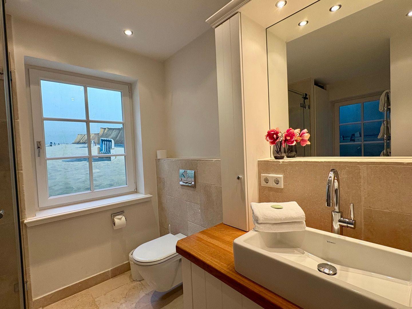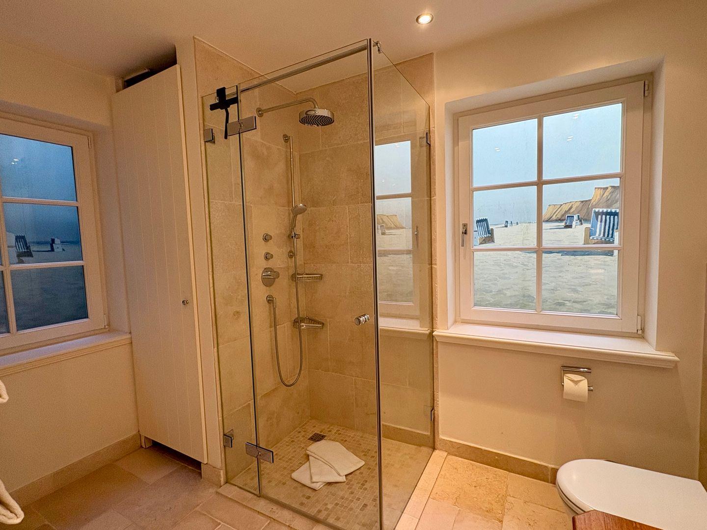 Auch das Untergeschoss überrascht mit Behaglichkeit: Zwei hübsche Doppelschlafzimmer, viel Stauraum in den Einbauschränken und ein geräumiges Duschbad bieten ausreichend Platz für Familie und Gäste. Das besondere Highlight ist die Dampfsauna – perfektes Syltfeeling und pure Entspannung, ganz unabhängig vom Wetter.