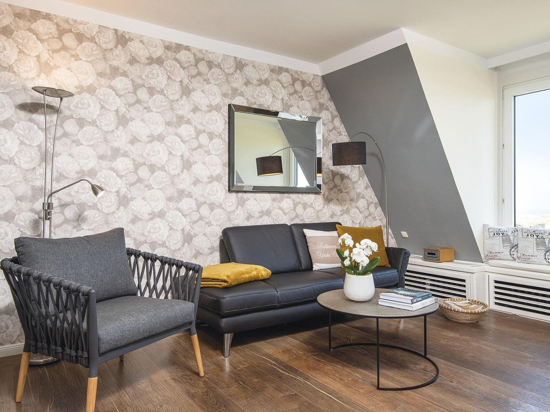 Ein Traumblick gleich über beide Meere bis zum Quermarkenfeuer und weiter hoch in den Norden über das Wattenmeer nach List bietet sich aus dem tiefen, von Sitzkissen gesäumten Panoramafenster des Wohnzimmers. Der große Vorzug des Appartementhauses Kampbarg ist seine Lage in der Kurhausstraße, im Herzen des renommierten Dorfes. Die Wohnung Nummer 36 liegt im ersten Stock und ist hochwertig, modern und originell eingerichtet. Neben dem Wohnzimmer befindet sich auf dieser Ebene zudem eine kleine separate Küche und ein Duschwannenbad unter der Schräge. Eine schmale Treppe führt hinauf in das behagliche und hochwertig eingerichtete Doppelschlafzimmer und hat einen traumhaften Blick durch das Dachfenster in den Sternenhimmel.