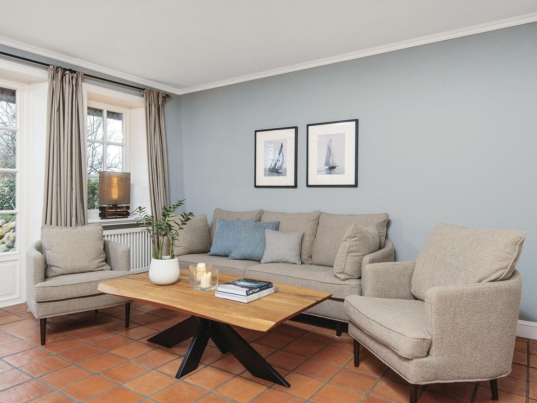Das passende Quartier für vier Personen: Die Südterrasse samt Strandkorb und Gartenmöbeln bietet einen malerischer Blick auf die Dünen. Für Gaumenfreuden aller Art können Sie in der offenen Küche sorgen. Der Wohnraum besitzt neben einem gemütlichen Sofa und dem großzügigen Essplatz auch einen Kamin und ist mit Natursteinboden ausgelegt. Im Obergeschoss erwartet Sie ein behagliches Doppelschlafzimmer, sowie ein edles Duschbad. Im Untergeschoss wurden ein weiteres Doppelzimmer und ein DuschWannenbad exquisit ausgestattet. Für das Wohlgefühl auch an trüben Tagen sorgt die hauseigene Sauna Dampfbad-Oase, die allen Gästen des Prahl Hüs zur Verfügung steht.