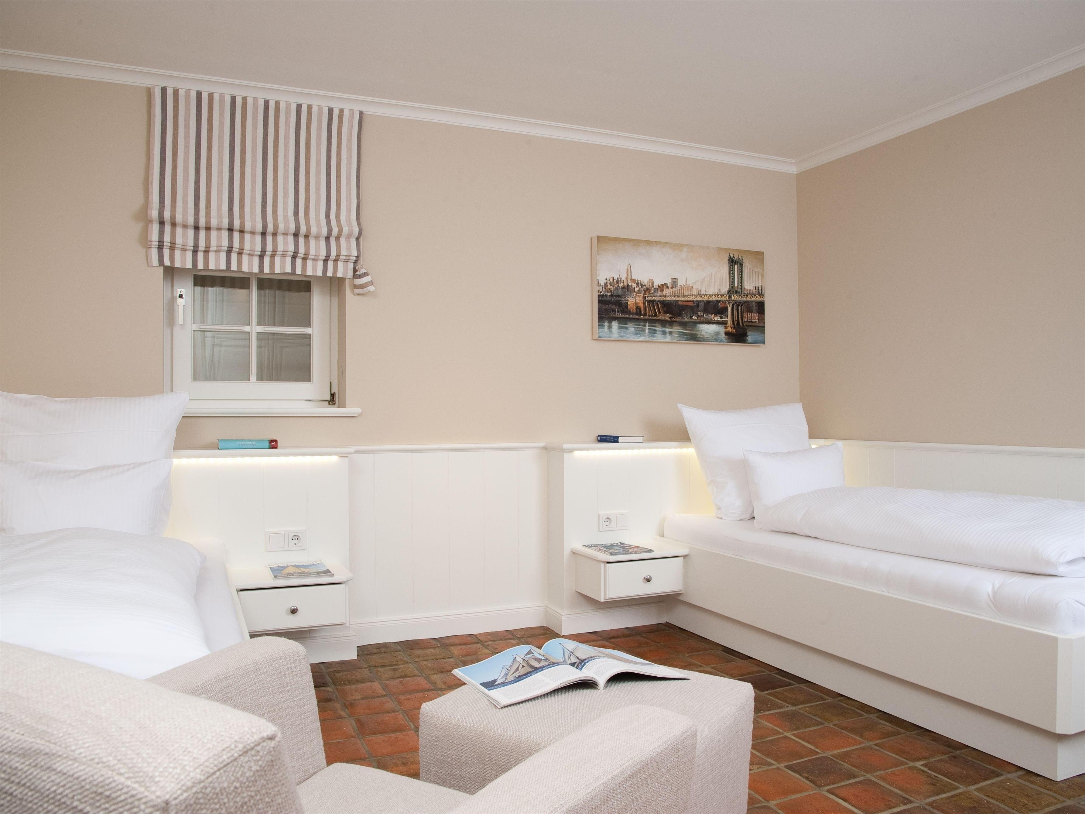Mitten im Dorf und doch in zweiter Reihe liegt dieses urgemütliche, in schönen hellen Farben gestaltete Hausteil. Im Erdgeschoss finden Sie den Wohnbereich mit einem Kaminofen, kuscheligem Sofa und großzügigem Essplatz. Eine separate Küche mit ausreichend Arbeitsfläche finden Sie ebenfalls auf dieser Ebene. Die kleine Terrasse im Osten vor dem Hausteil lädt zum ausgiebigen Frühstück ein. Im Obergeschoss liegen ein Doppel- und ein Einzelschlafzimmer, sowie ein Duschbad. Im Untergeschoss gibt es noch ein Schlafzimmer mit zwei Einzelbetten und ein zweites Duschbad.
