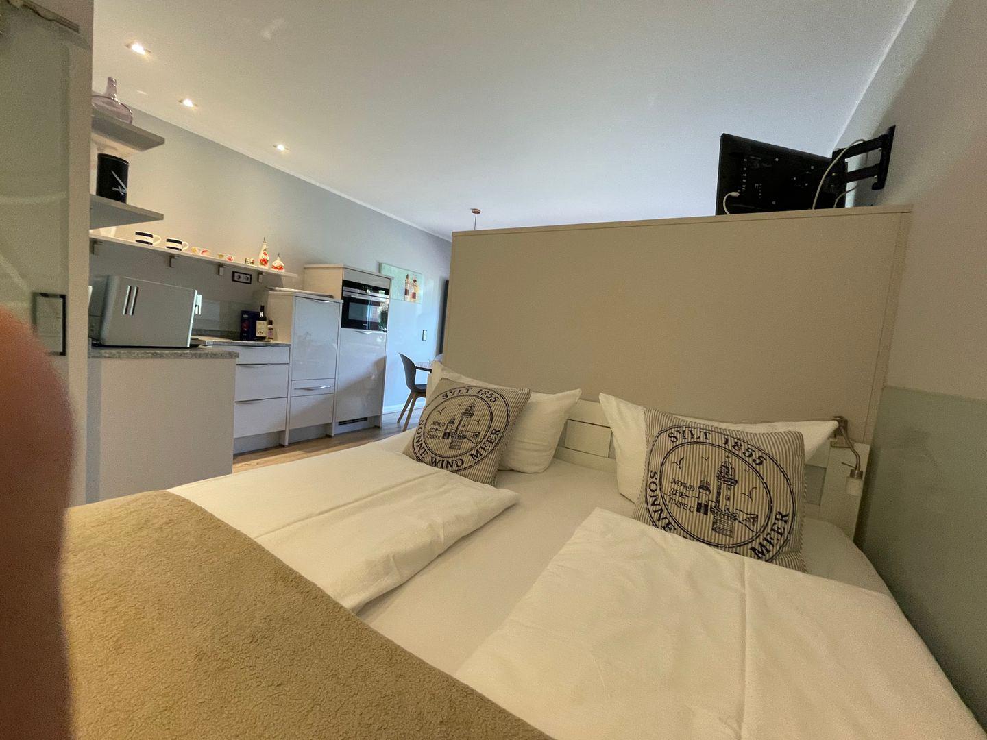 In bester Lage von Kampen erwartet Sie dieses komplett renovierte, charmante Feriendomizil unter Reet im Haus Kampbarg. Eine stilvolle, moderne und sehr durchdachte Möblierung machen das Studioappartement "Lieblingsplatz" zu einem idealen Rückzugsort für zwei Gäste.
