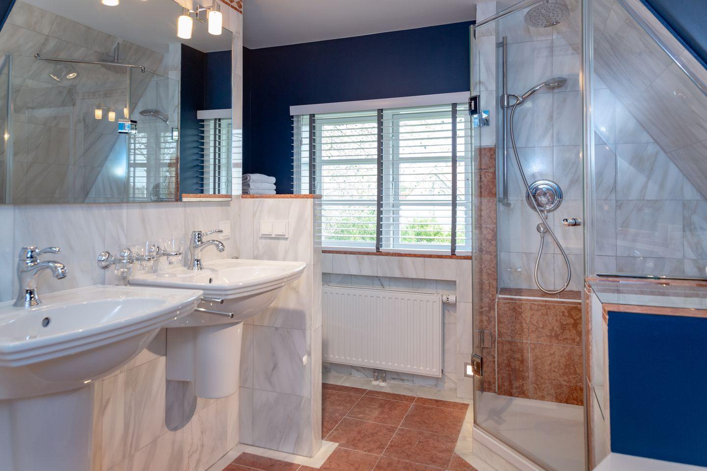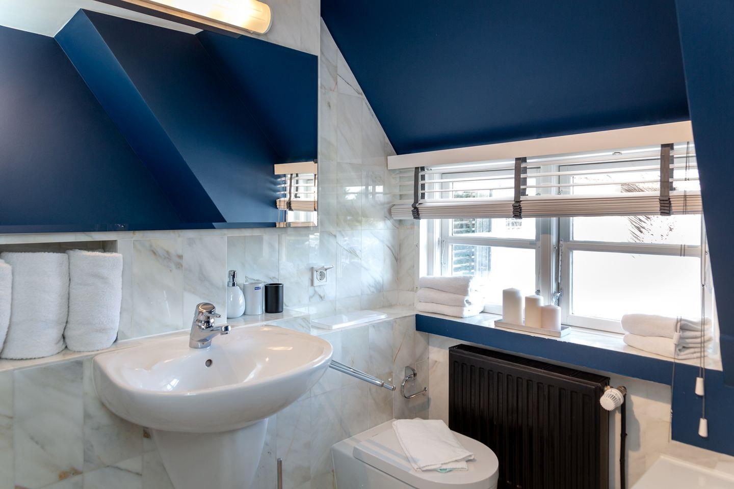 Im 2. Obergeschoss empfangen Sie zwei weitere Schlafzimmer mit je zwei Einzelbetten und einem eigenen Waschbecken sowie ein Schlafzimmer mit zwei Einzelbetten. Auf dieser Etage befindet sich außerdem ein Duschbad.