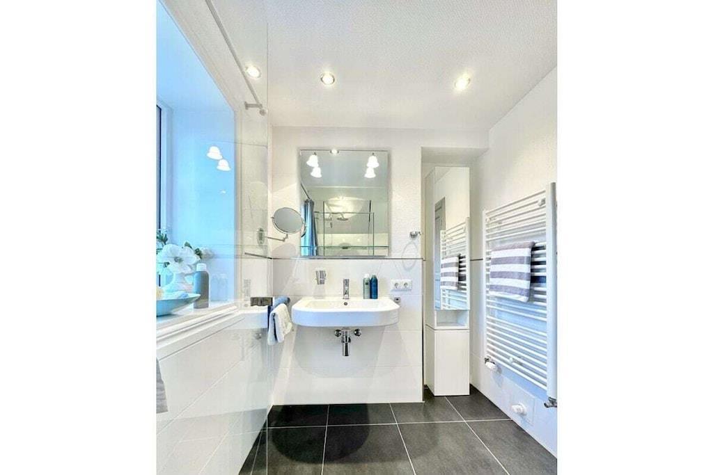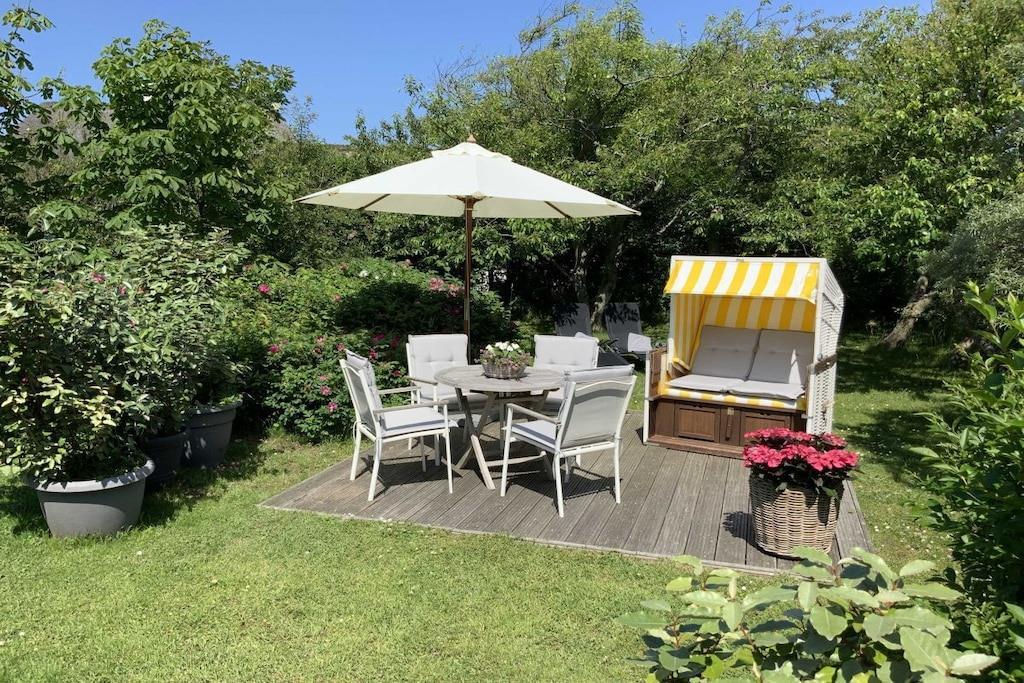 Det frisiske stråtækte hus er opdelt i fire maisonettelejligheder. Den store have har et privat opholdsområde med strandstol, bord og stole. Du kan parkere din bil på en udpeget parkeringsplads langs grundgrænsen. Stue, spisestue og køkken ligger i stueetagen og vender alle mod syd. De er meget rummelige og veludstyrede. Wi-Fi, telefon, smart-tv, hi-fi-system og Blu-ray-afspiller er tilgængelige. Det komfortable køkken tilbyder alle nødvendige bekvemmeligheder og faciliteter til selvforplejning. Wi-Fi er tilgængeligt i hele huset! Du kan finde mere information på vores hjemmeside.