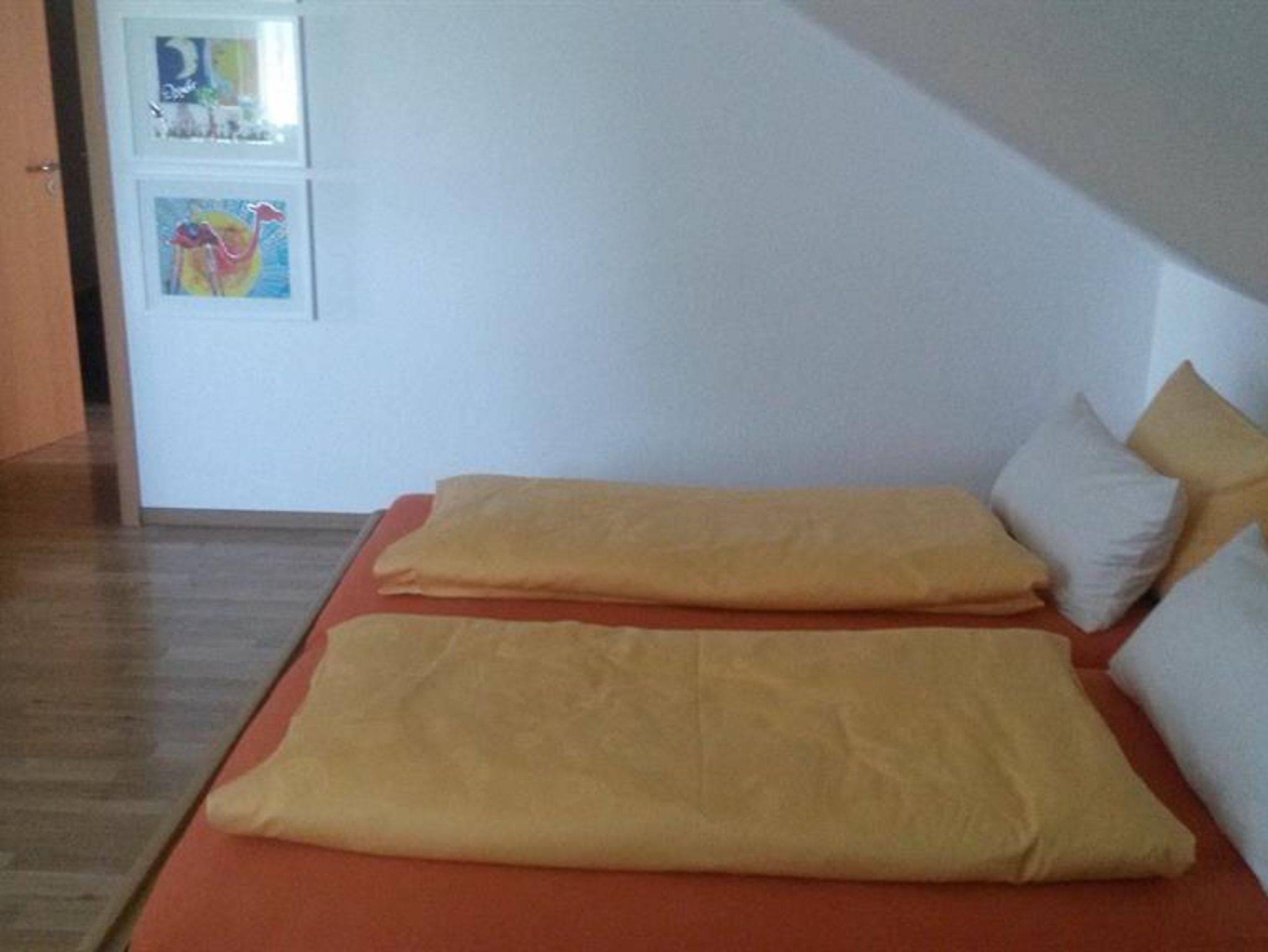 Die große Wohnung im 2. OG hat zwei separate Schlafzimmer mit eigenem Zugang. Das Bad liegt mittig und wird gemeinsam benutzt. Hinzu kommt ein großer Wohnraum mit voll ausgestatteter Küche, großem Essteisch und einer großen Couch mit Schlaffunktion. In einem der Schlafzimmer befindet sich eine zweite Schlafcouch. Kinderbetten können in beiden Schlafzimmern gestellt werden und können beigestellt werden. Zudem sind ein Wickeltisch und zwei Hochstühle vorhanden. Diese große Wohnung wird wegen der getrennten Schlafzimmer gerne von Familien oder gemeinsam reisenden Paaren genutzt. Der großzügige Wohnraum bietet bis zu acht Personen Platz, so dass man diesen auch zusammen mit z. B. einem Appartement als gemeinsamen Aufenthaltsraum nutzen kann. Die Küche im Wohnraum ist komplett (inkl. Spülmaschine) ausgestattet, eine Verpflegung auch von mehreren Personen ist ganz unproblematisch. Der Wohnraum ist mit Teppich ausgelegt, die Schlafzimmer haben einen wischbaren Boden. Genießen Sie Ihr Frühstück in der Morgensonne auf dem Balkon, von dem man einen schönen Blick auf den Garten (aber auch auf die Kinder auf dem Spielplatz) hat.