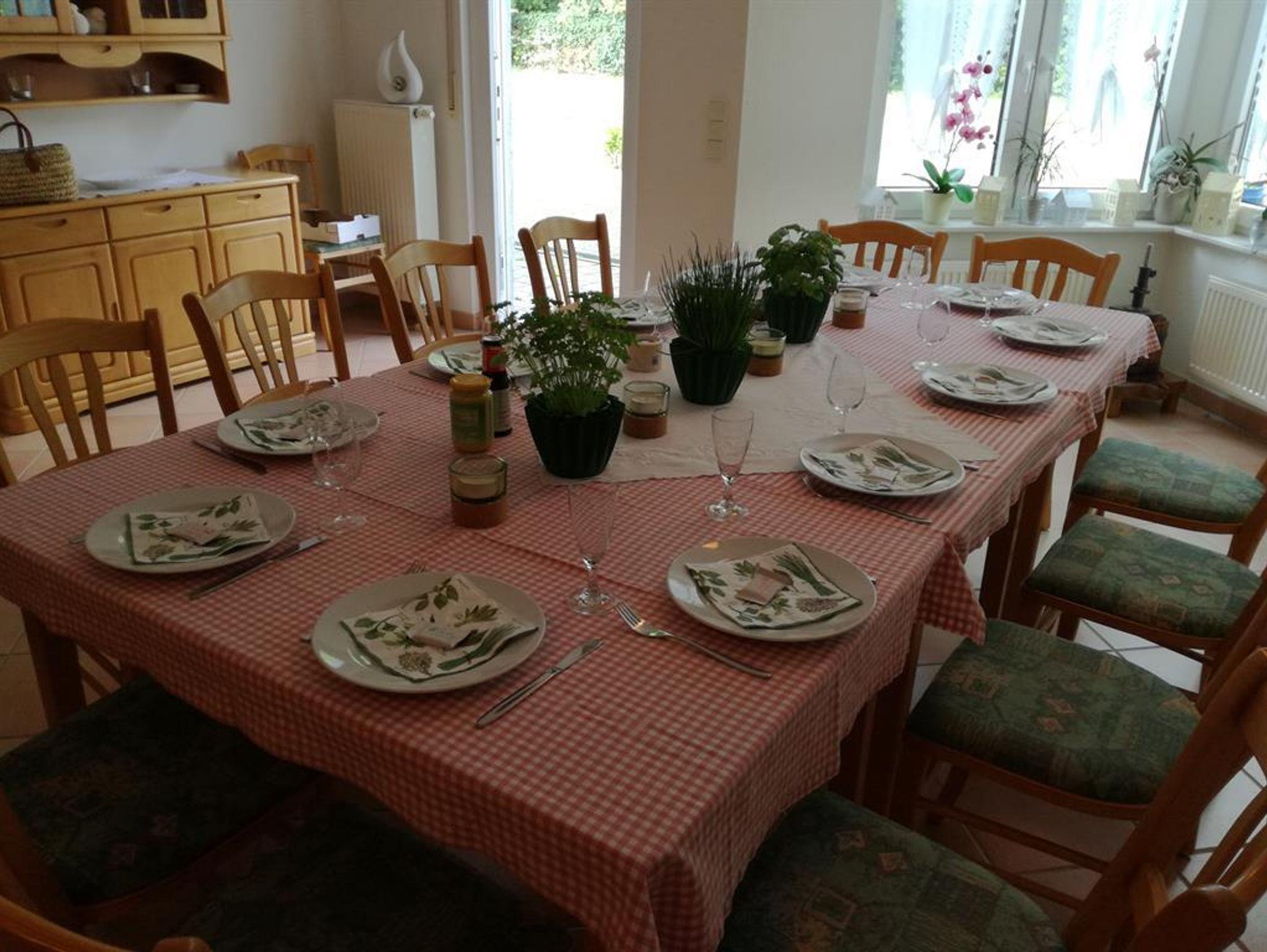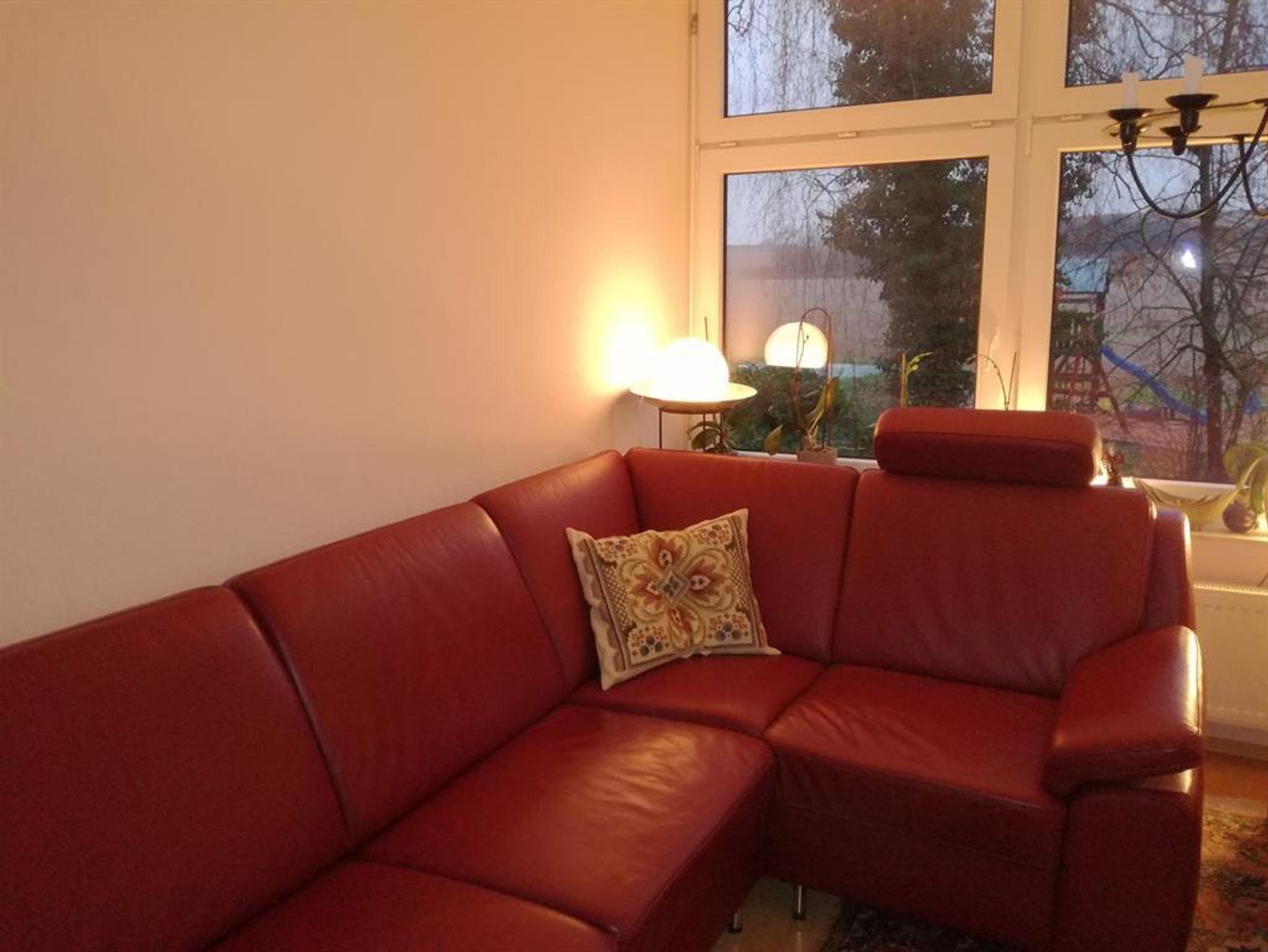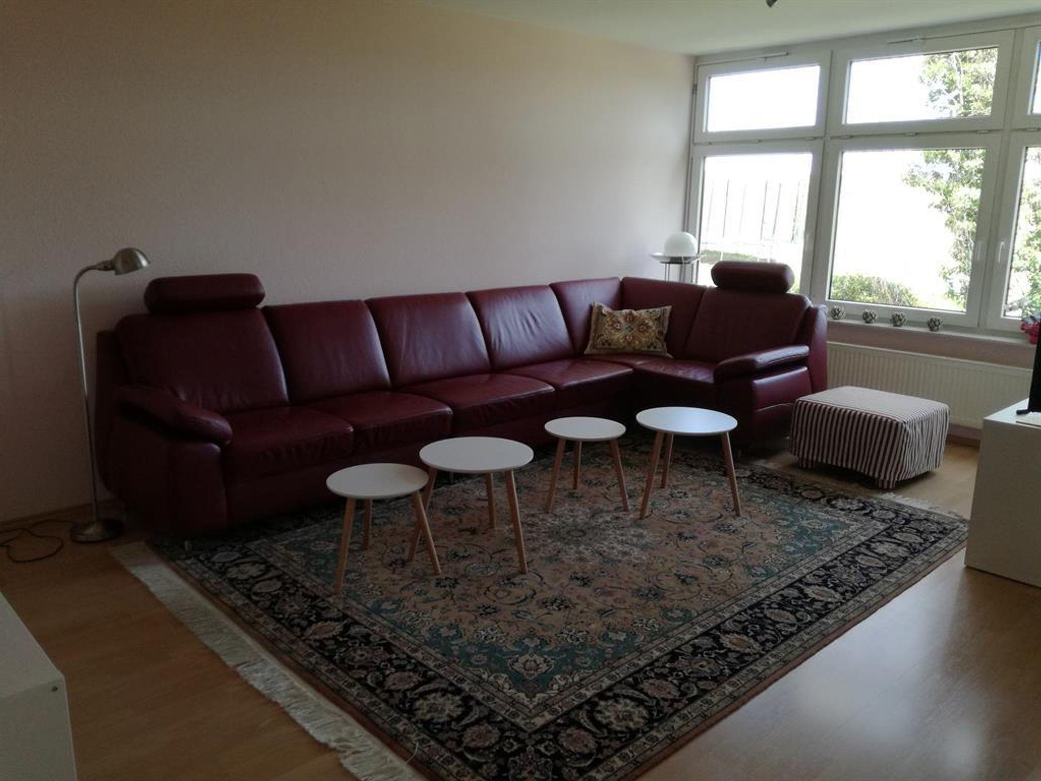 Die Fewo mit 2 Schalfzimmern erwartet Sie mit 80 qm Wohnfläche und liegt im 1. OG des Ferienhauses. Sie besticht durch ein sehr großes Wohnzimmer mit durchgängiger Fensterfront zum Garten hinaus. Die Ostseit beschert ein schönes Morgenlicht. Das große Sofa bietet bis zu 6 Personen Platz, ebenso der ausziehbare Esstisch. Dazu erwartet Sie eine separate großzügige Küche mit einem zusätzlichen Sitzplatz. Der zugehörige Balkon ist überdacht.