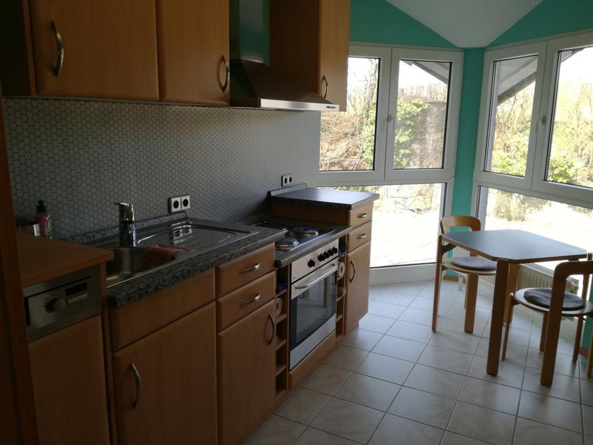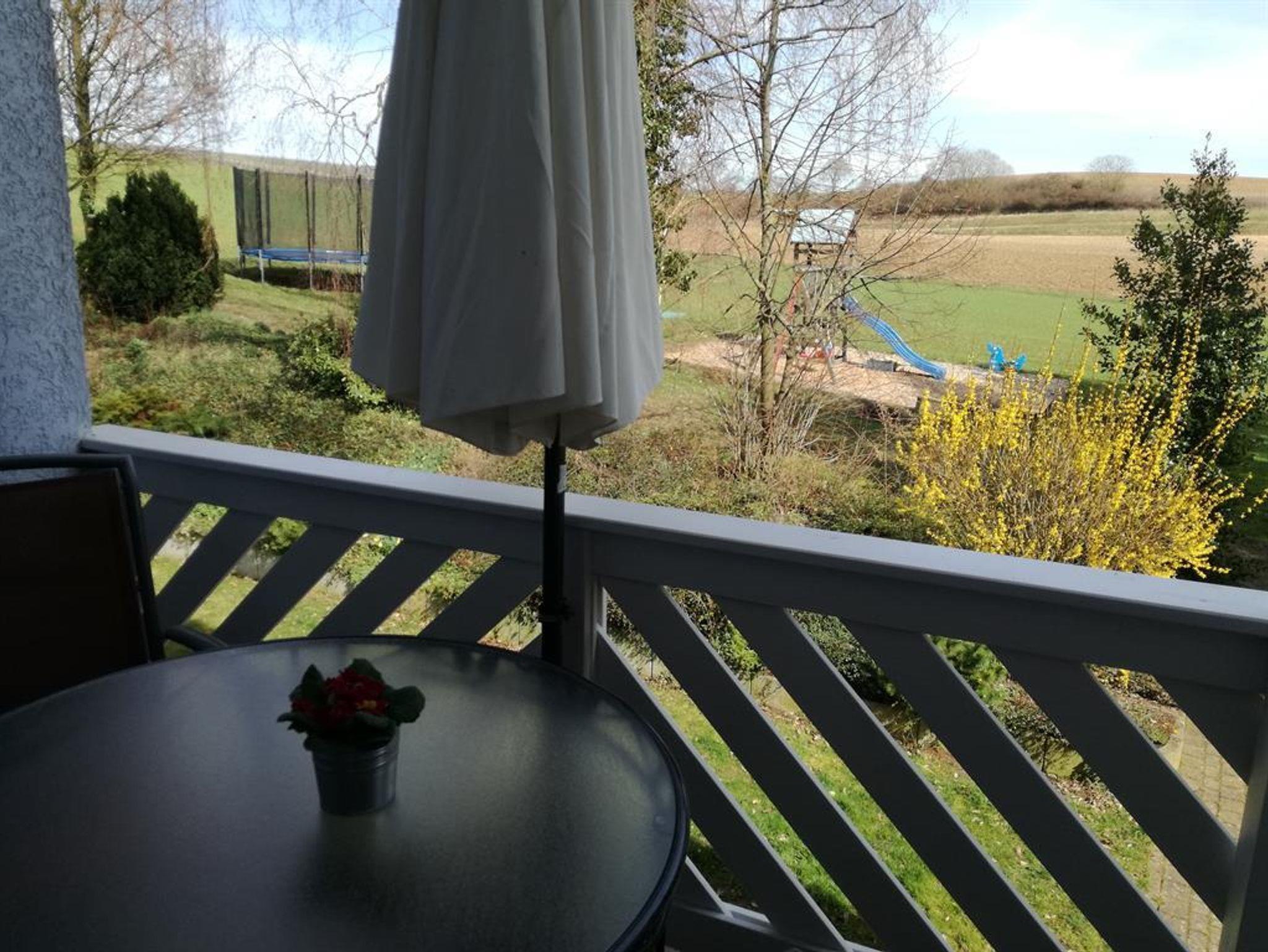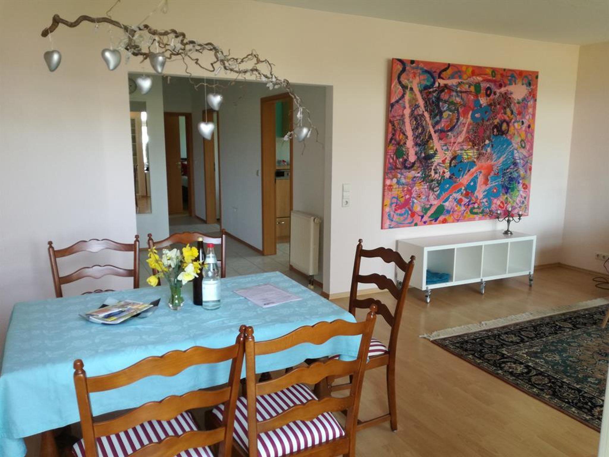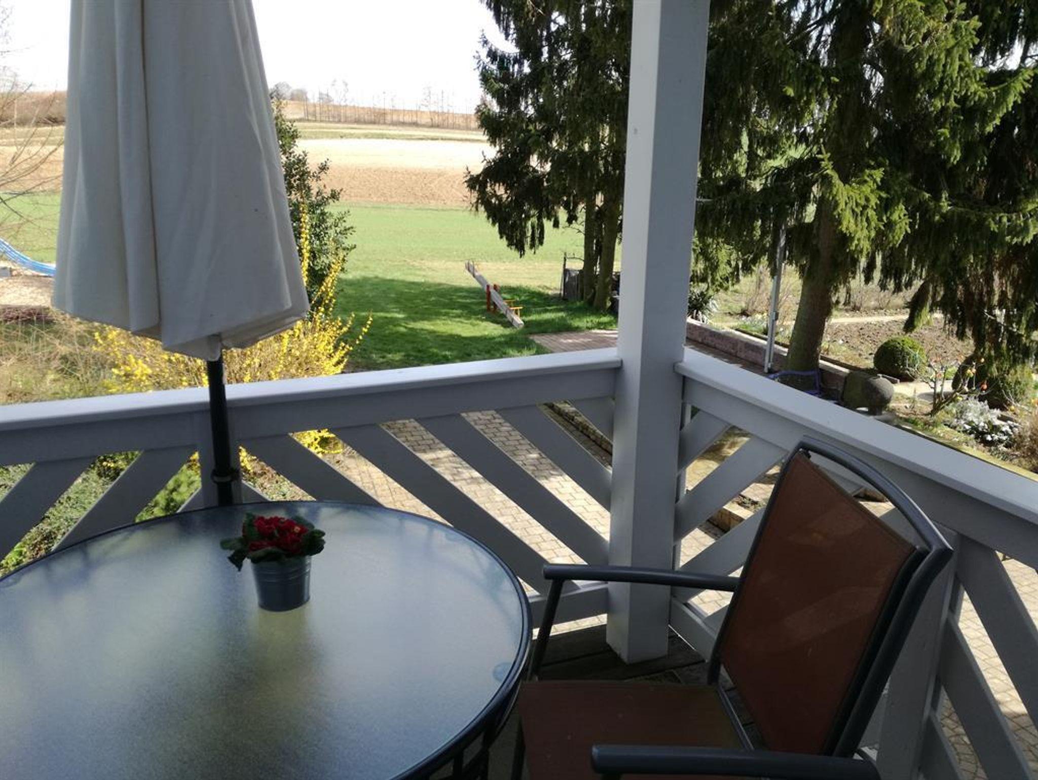 Die Wohnung liegt in einem Mehrfamilienhaus auf einem ehemaligen Bauernhof in freier Natur. Aus allen Fenstern und vom Balkon aus schaut man ins Grüne.