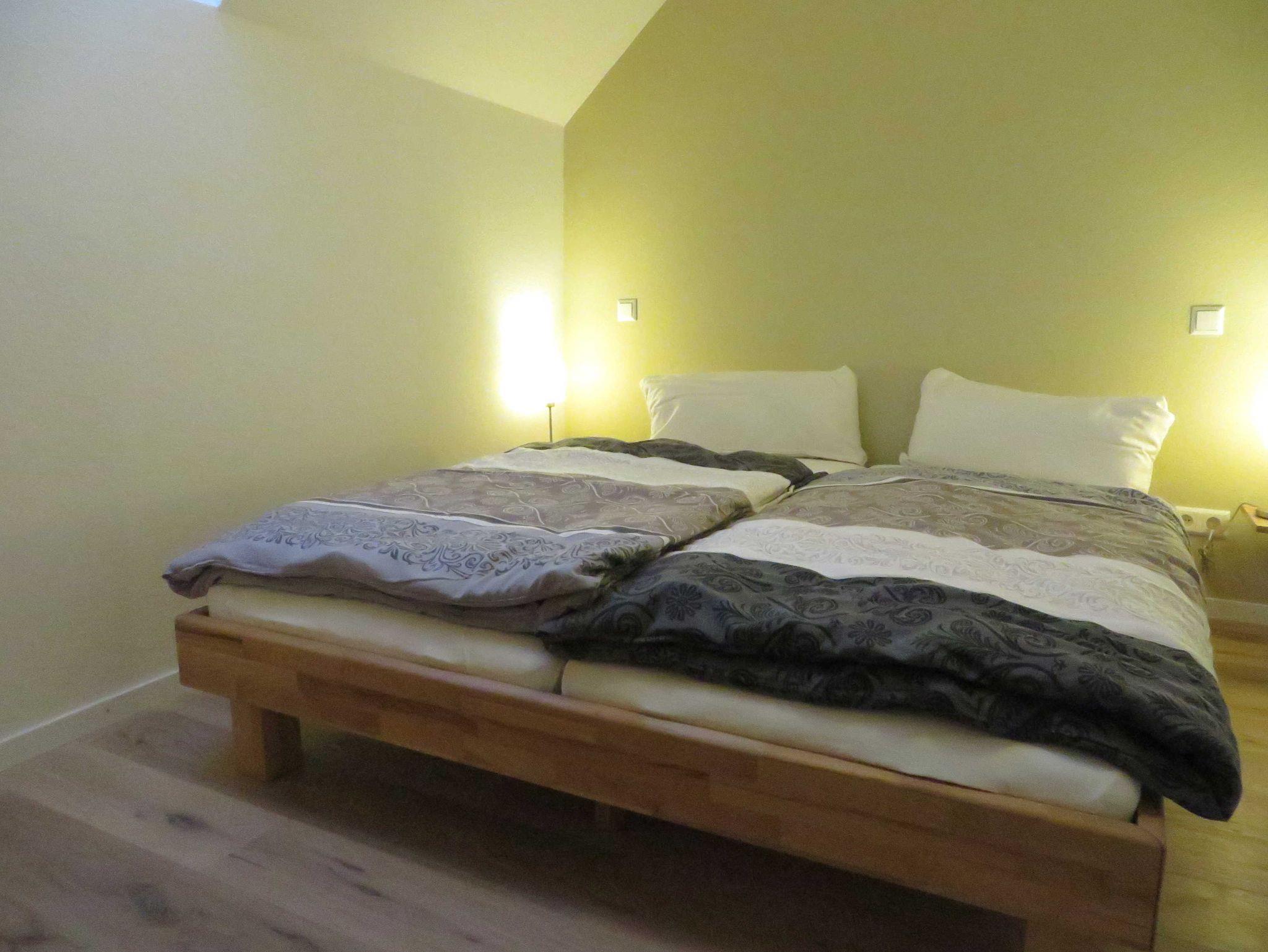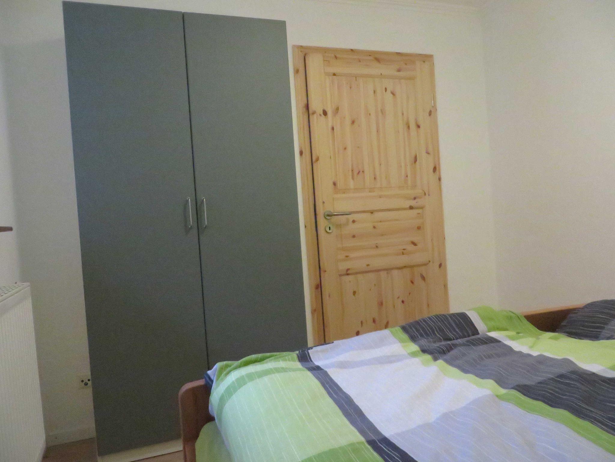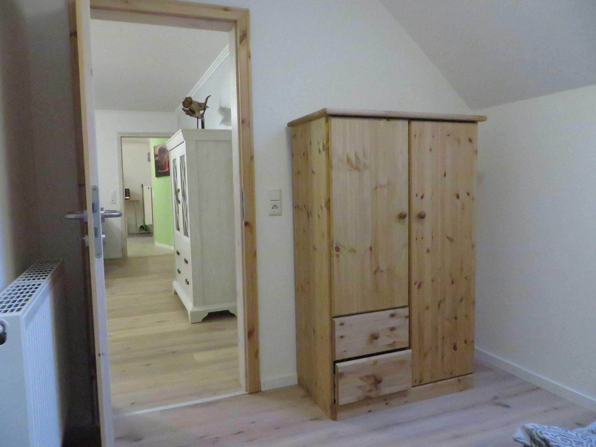 In der Fewo befinden sich 2 Schlafräume mit einem Doppelbett (1,80 m x2,00 m) und einem Doppelbett (1,60mx2,00 m), einem Wohnzimmer mit zusätzlicher ausziehbarer Schlafcouch mit Flachbildfenseher und Radio, eine abgegrenzte Küche mit ausreichendem Geschirr, Herd mit Ceranfeld, Kühlschrank mit Gefrierfach, Kaffeemaschine, Toaster, Wasserkocher und Mikrowelle, ein Bad mit Dusche und Toilette.