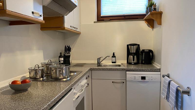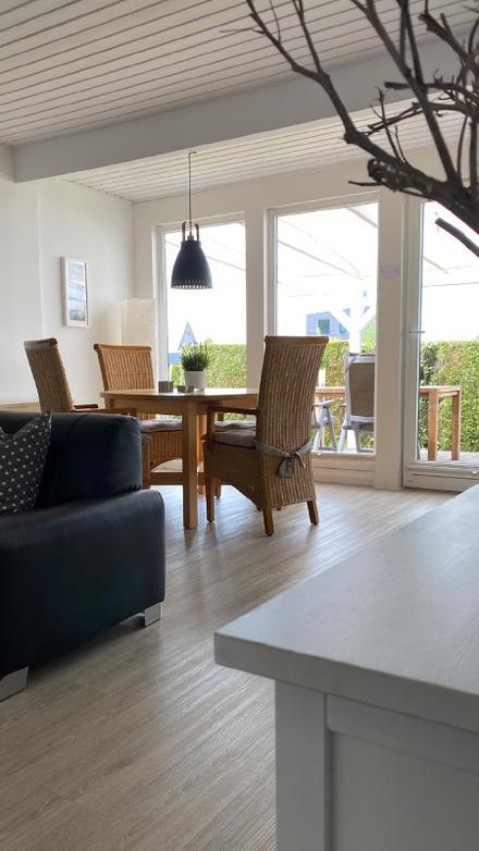 Das modern, hell und gemütlich eingerichtete 70qm Ferienhaus gemäß DIN 277 verfügt über zwei Schlafräume, einen kombinierten Wohn- und Essbereich mit offener Küchenzeile sowie ein Duschbad/WC. In der Küche befinden sich unter anderem eine Mikrowelle, Kaffeemaschine und ein Wasserkocher. Waschmaschine und Wäschetrockner sind ebenfalls vorhanden. Vom Wohn- und Essbereich aus gelangen Sie auf die großzügige überdachte Terrasse, wo Sie die Sonnenstrahlen bei einem Glas Wein entspannt genießen können.