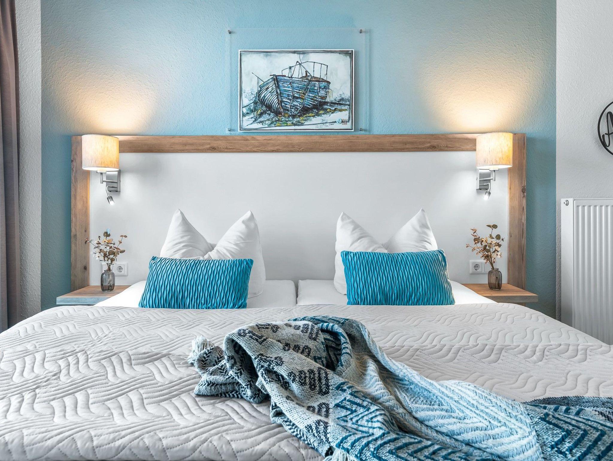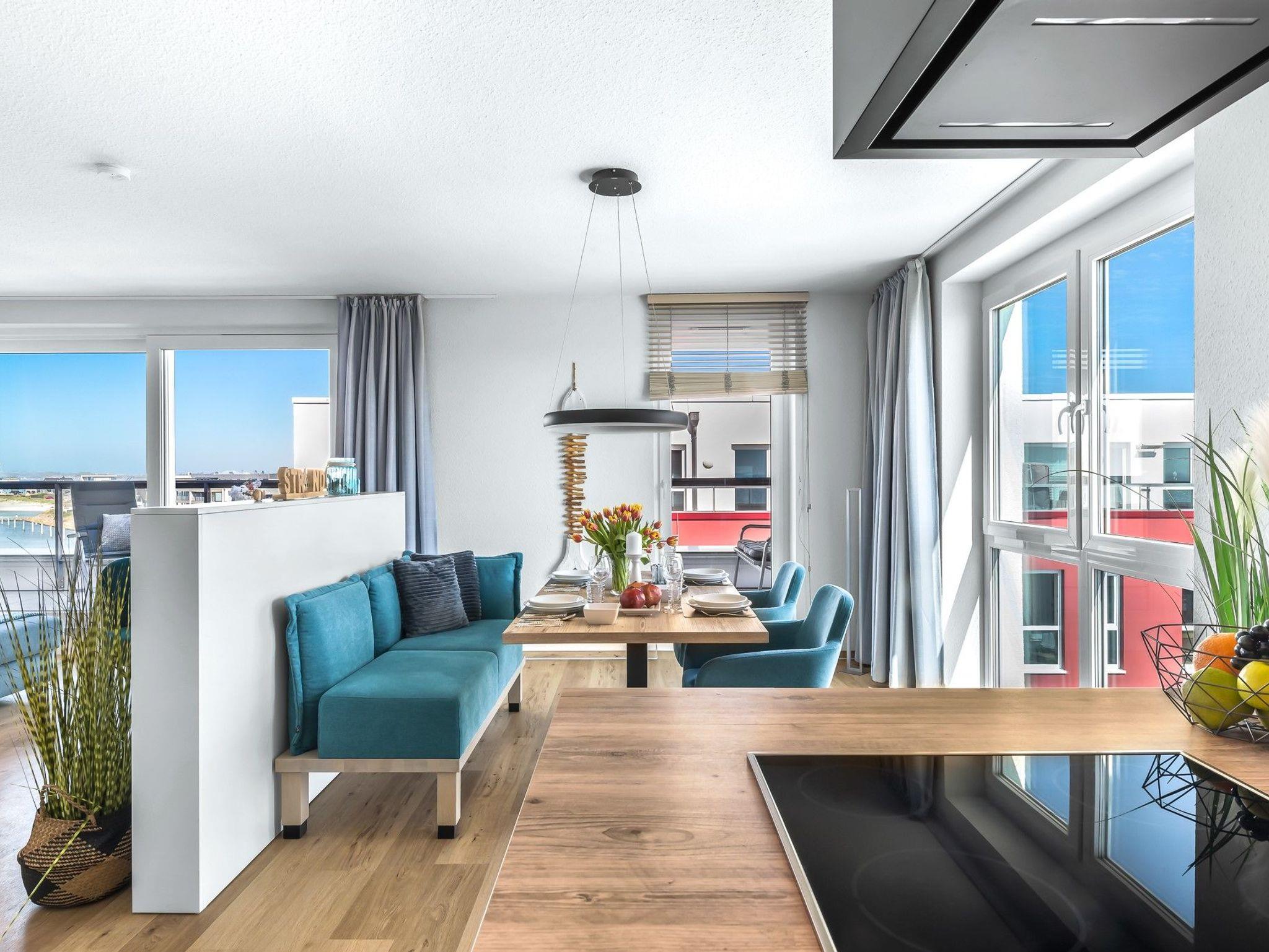 Die Residenz Bollwark beherbergt 26 hervorragend ausgestattete Wohneinheiten. In den Zwei- und Dreizimmerappartements fühlen sich erholungsuchende Paare ebenso wohl wie Familien mit Kindern, die erlebnisreiche Tage am Meer verbringen möchten. Alle Wohnungen verfügen über einen privaten Balkon, eine Terrasse oder Loggia: Dort lassen die Feriengäste den Tag nah dran am Geschehen auf dem Wasser entspannt mit einer Tasse Kaffee beginnen oder abends bei einem Glas Rotwein Revue passieren. Für das Interieur der hellen und großzügig geschnittenen Wohneinheiten waren erfahrene Inneneinrichtungsspezialisten verantwortlich.
