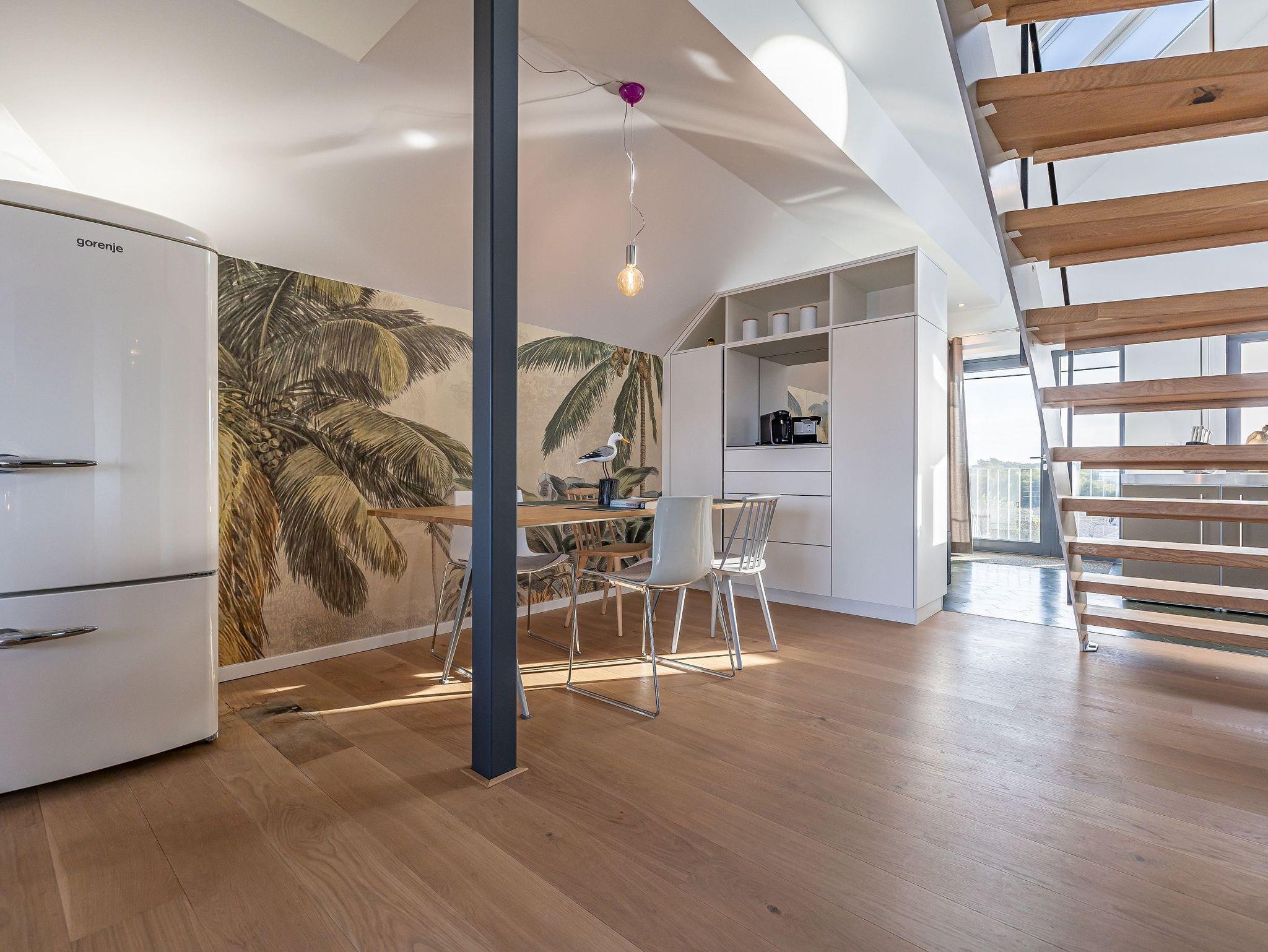 Tauchen Sie ein in ein besonderes Wohnerlebnis: Diese 126 m² große Maisonette-Wohnung, ideal für 2 bis 4 Personen, verbindet großzügige Raumgestaltung mit exklusiver Ausstattung und einer einzigartigen Mischung aus Gemütlichkeit und maritimem Flair.