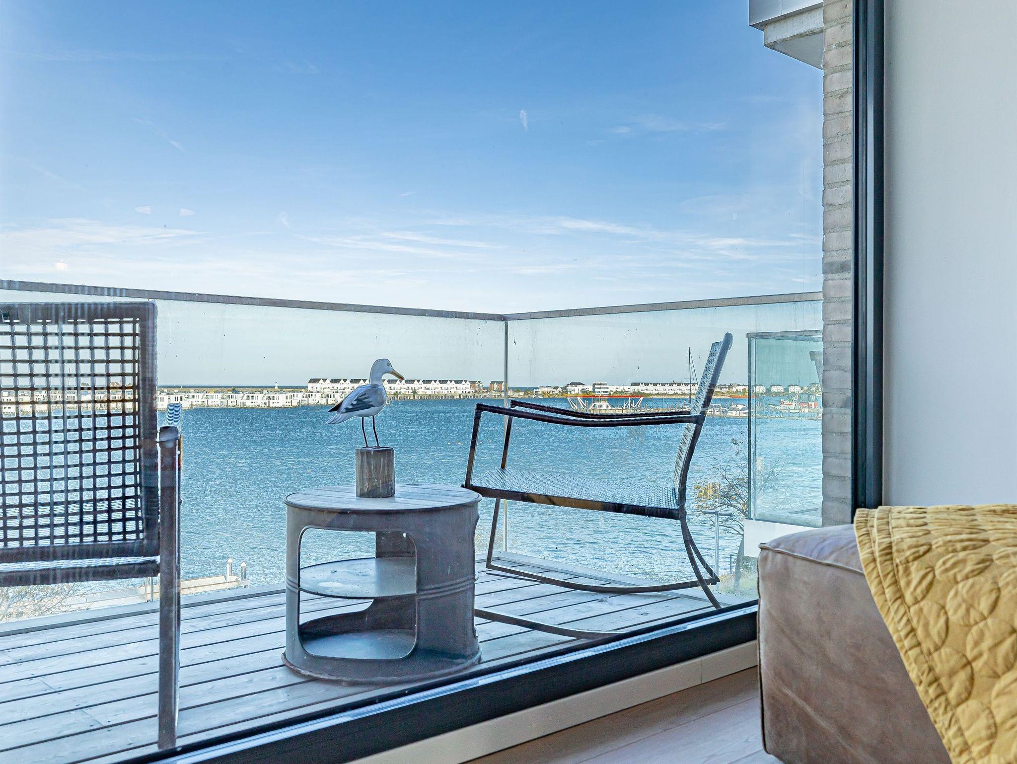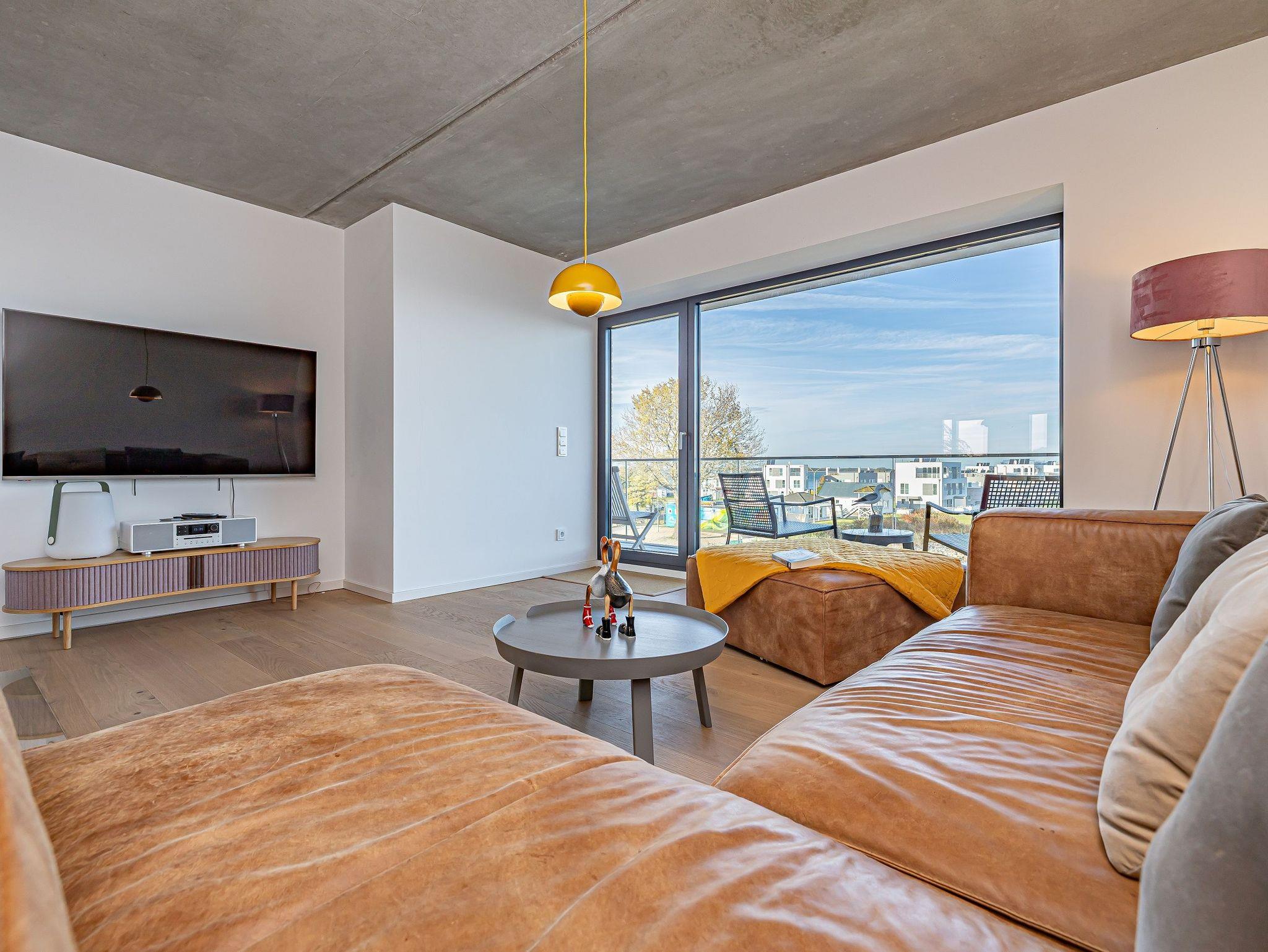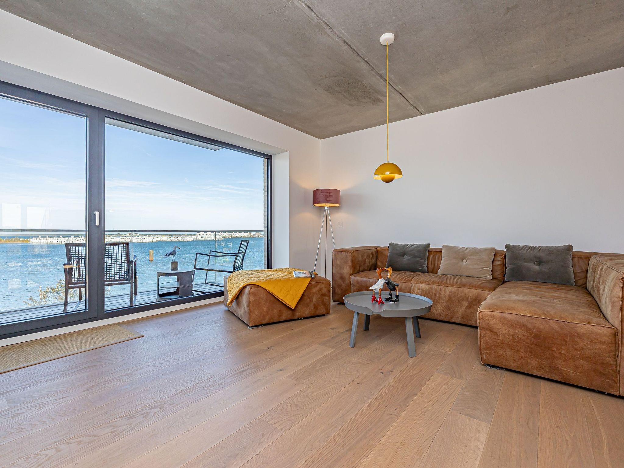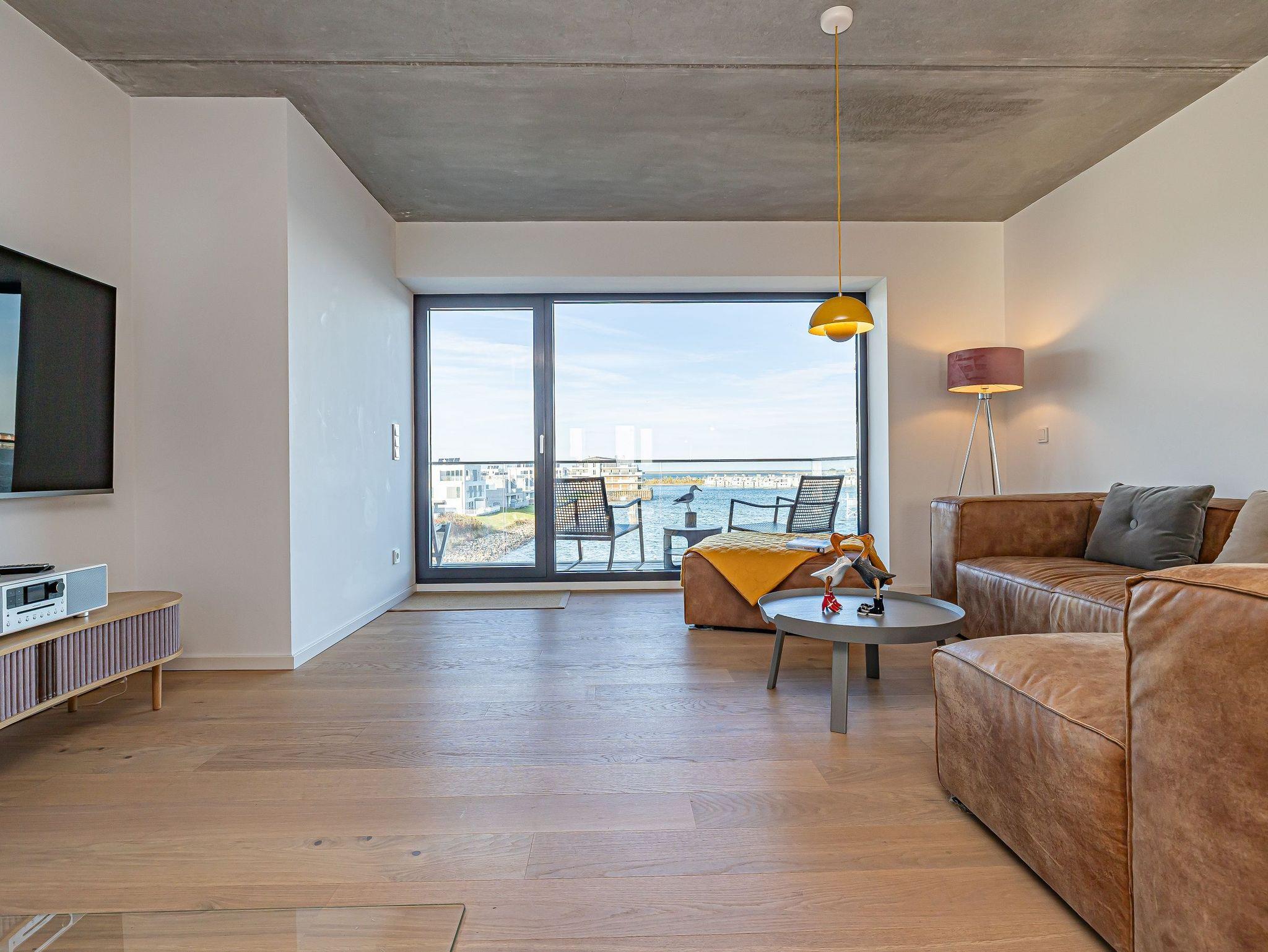 Die offene Designküche, komplett ausgestattet und mit einem inspirierenden Wandbild verziert, lädt zu genussvollen Kochabenden ein. Entspannen Sie im stilvollen Wohnbereich mit Kamin und lassen Sie sich von der traumhaften Aussicht auf den Hafen, die Schleimündung mit Leuchtturm und die Ostsee verzaubern.