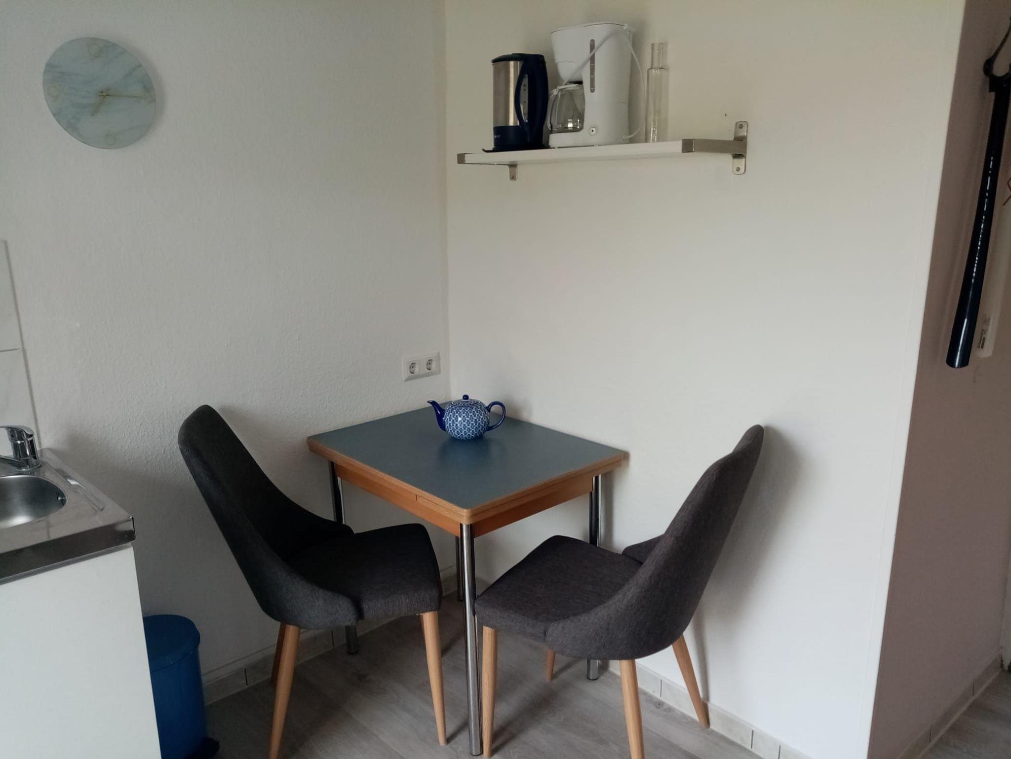 Ferienwohnung 26 (Zweiraum-Appartement )für 2 Personen. Kombinierter Wohn-Schlafraum mit Doppelbett, kleine Pantryüche mit Sitzgelegenheit, Dusche, WC und Waschgelegenheit.