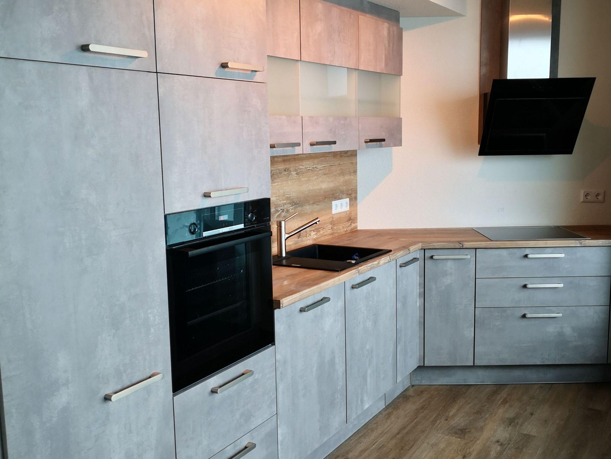 Am großen Eiche-Esstisch mit Mosaik-Vertäfelung finden bis zu 6 Gäste auf dunkelblauen Samtstühlen Platz. Die Ausstattung der Küche und des Geschirrs sollte keine Wünsche offenlassen.