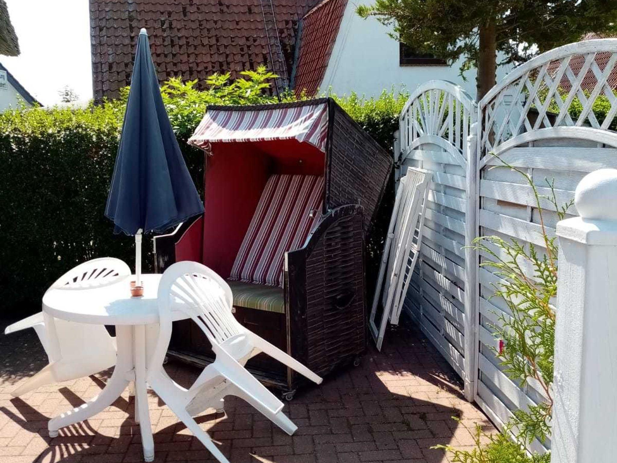 Die Ferienwohnung befindet im EG mit einer eigenen, großzügiggen möblierten Terrasse, zu der auch ein Strandkorb gehört.