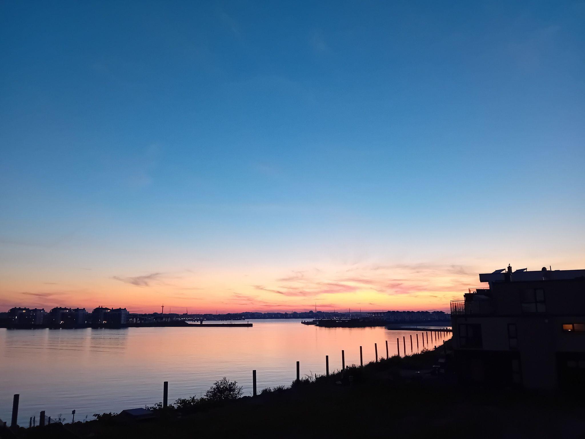 2-Zimmer Ferienwohnung mit Blick von allen Fenstern auf die Ostsee und den Hafen, windgeschützter Balkon.