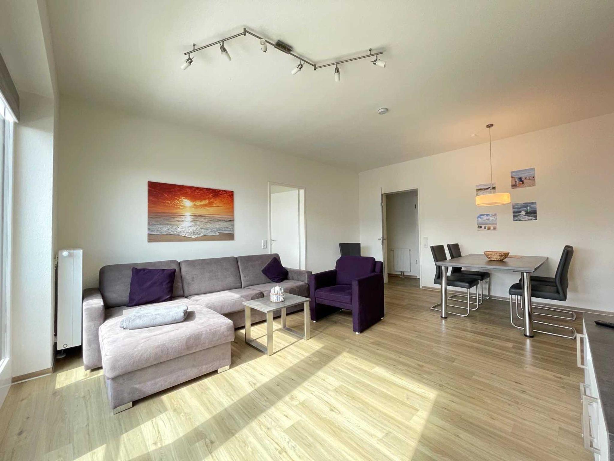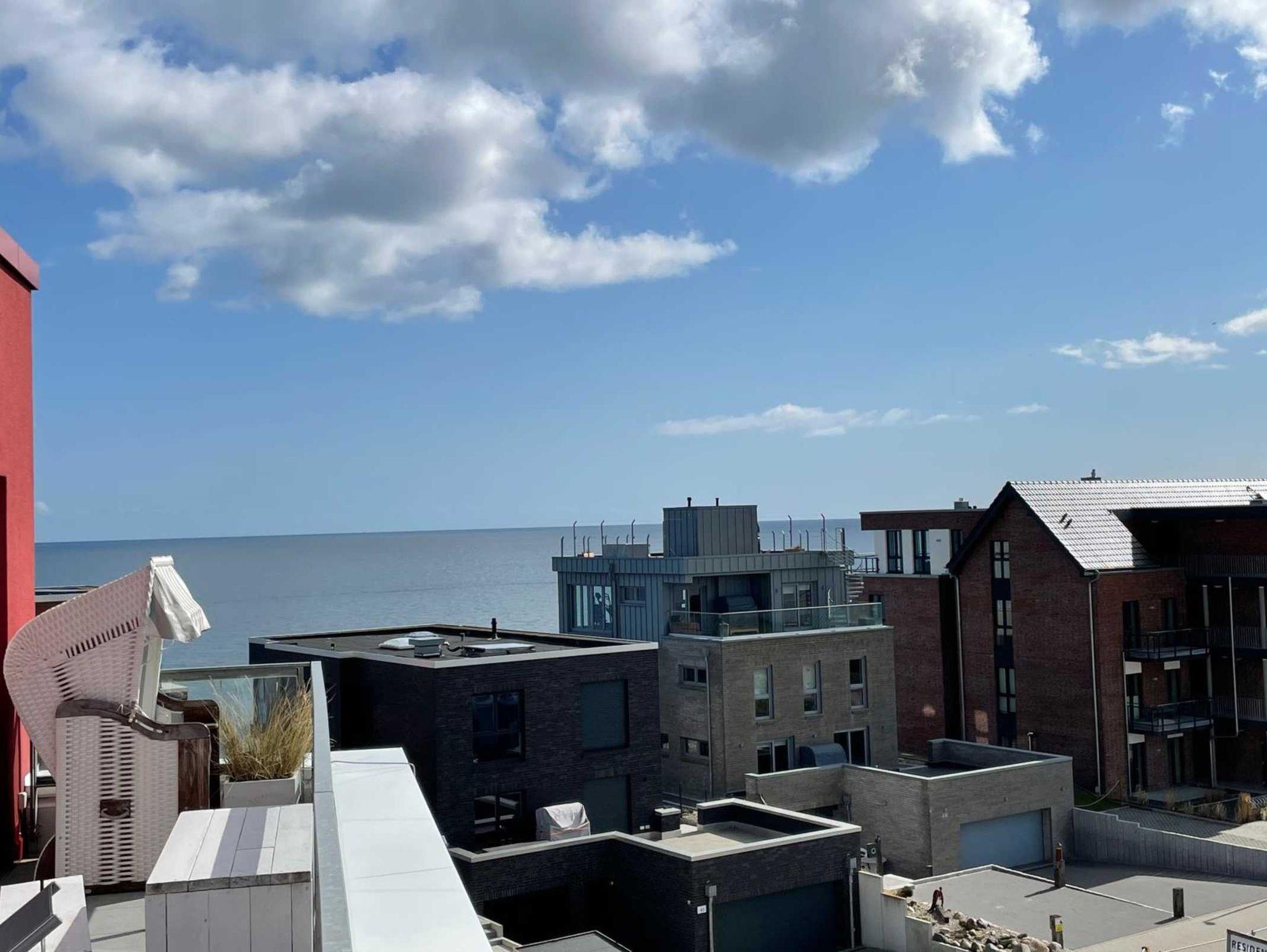 Hochwertigeingerichtete 3-Zimmer-Penthouse-Ferienwohnung (75 m²) mit zwei Schlafzimmern und einem großzügigen Wohnraum mit separatem Essplatz, Doppelbettcouch, Einbauküche. Zur großzügigen Dachterrasse haben sie ausdem Wohnzimmer sowie aus beiden Schlafzimmern Zugang.