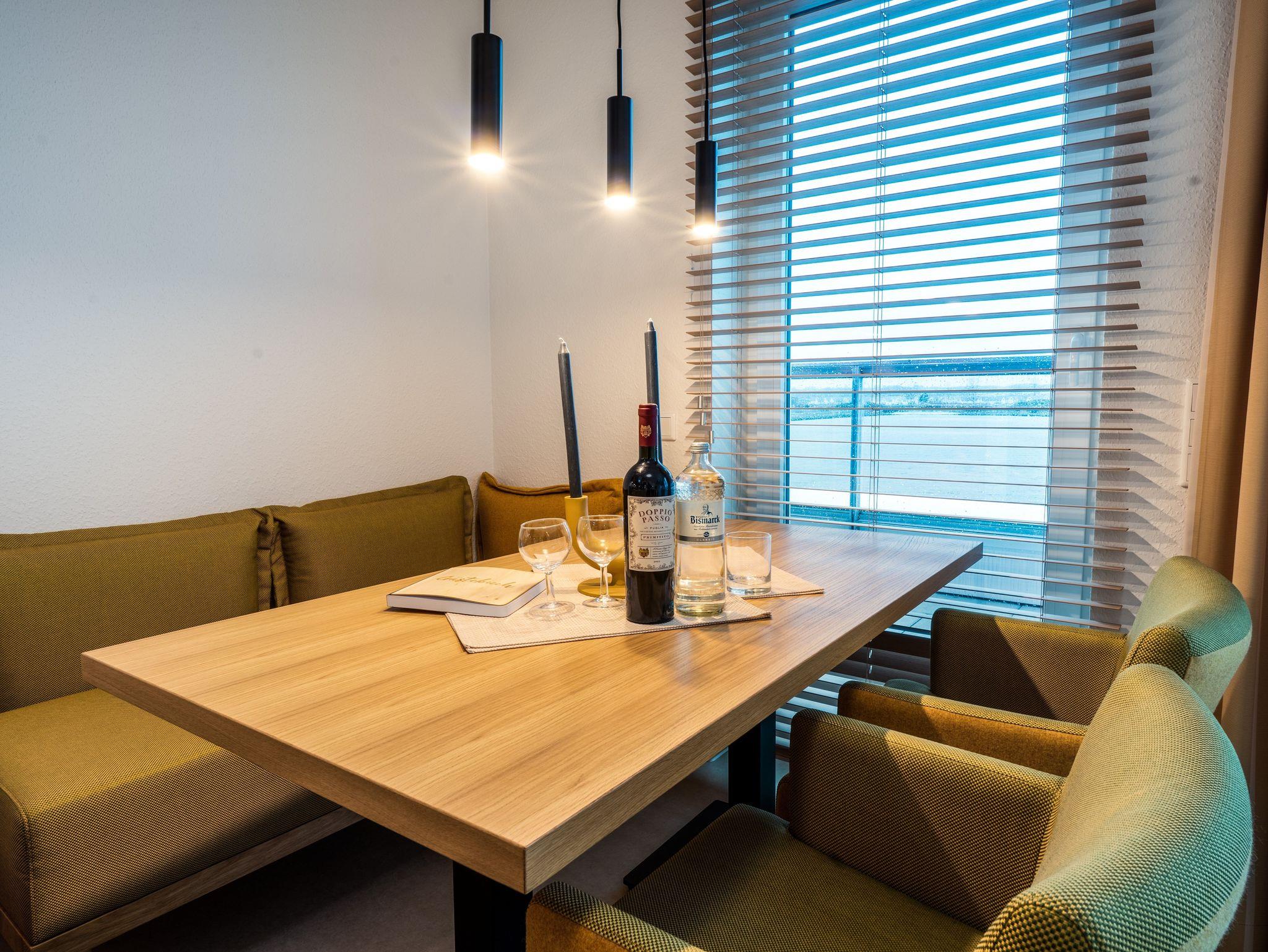 Die Residenz Bollwark beherbergt 26 hervorragend ausgestattete Wohneinheiten. In den Zwei- und Dreizimmerappartements fühlen sich erholungsuchende Paare ebenso wohl wie Familien mit Kindern, die erlebnisreiche Tage am Meer verbringen möchten. Alle Wohnungen verfügen über einen privaten Balkon, eine Terrasse oder Loggia: Dort lassen die Feriengäste den Tag nah dran am Geschehen auf dem Wasser entspannt mit einer Tasse Kaffee beginnen oder abends bei einem Glas Rotwein Revue passieren. Für das Interieur der hellen und großzügig geschnittenen Wohneinheiten waren erfahrene Inneneinrichtungsspezialisten verantwortlich.