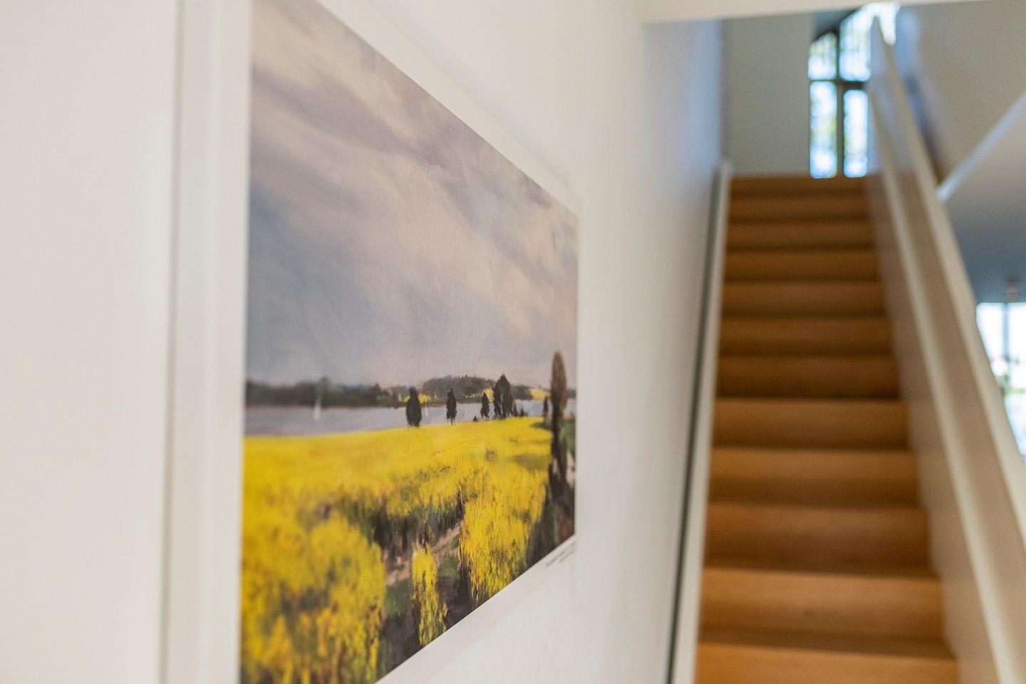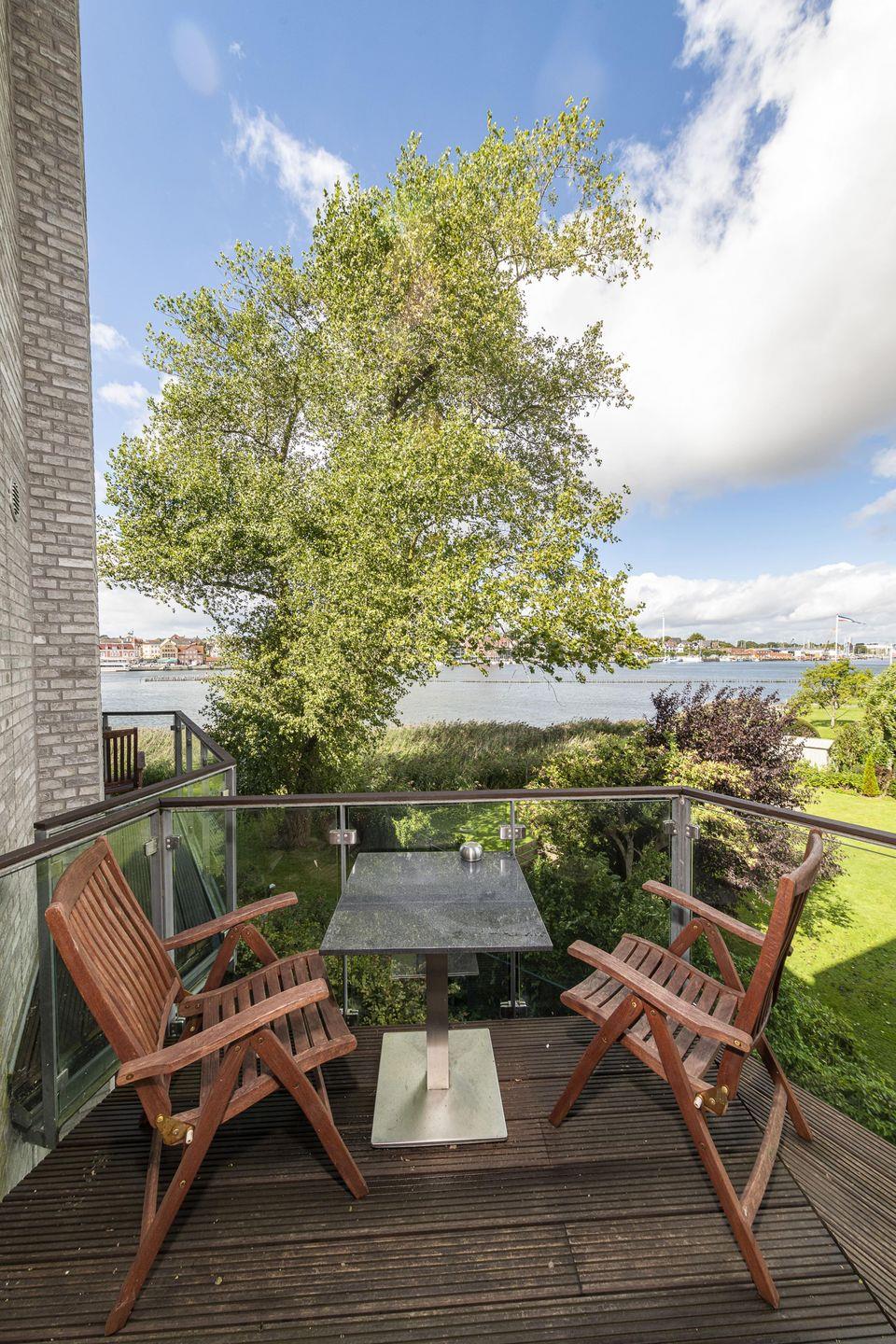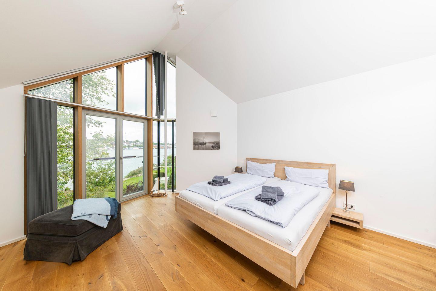 Genießen Sie den atemberaubenden Ausblick durch die Atelierverglasung auf die Schlei und Kappeln, entspannen Sie vor dem Kamin im Wohnbereich mit Blick auf das Wasser. Die Wohnung ist stilvoll und edel mit skandinavischen Akzenten eingerichtet.