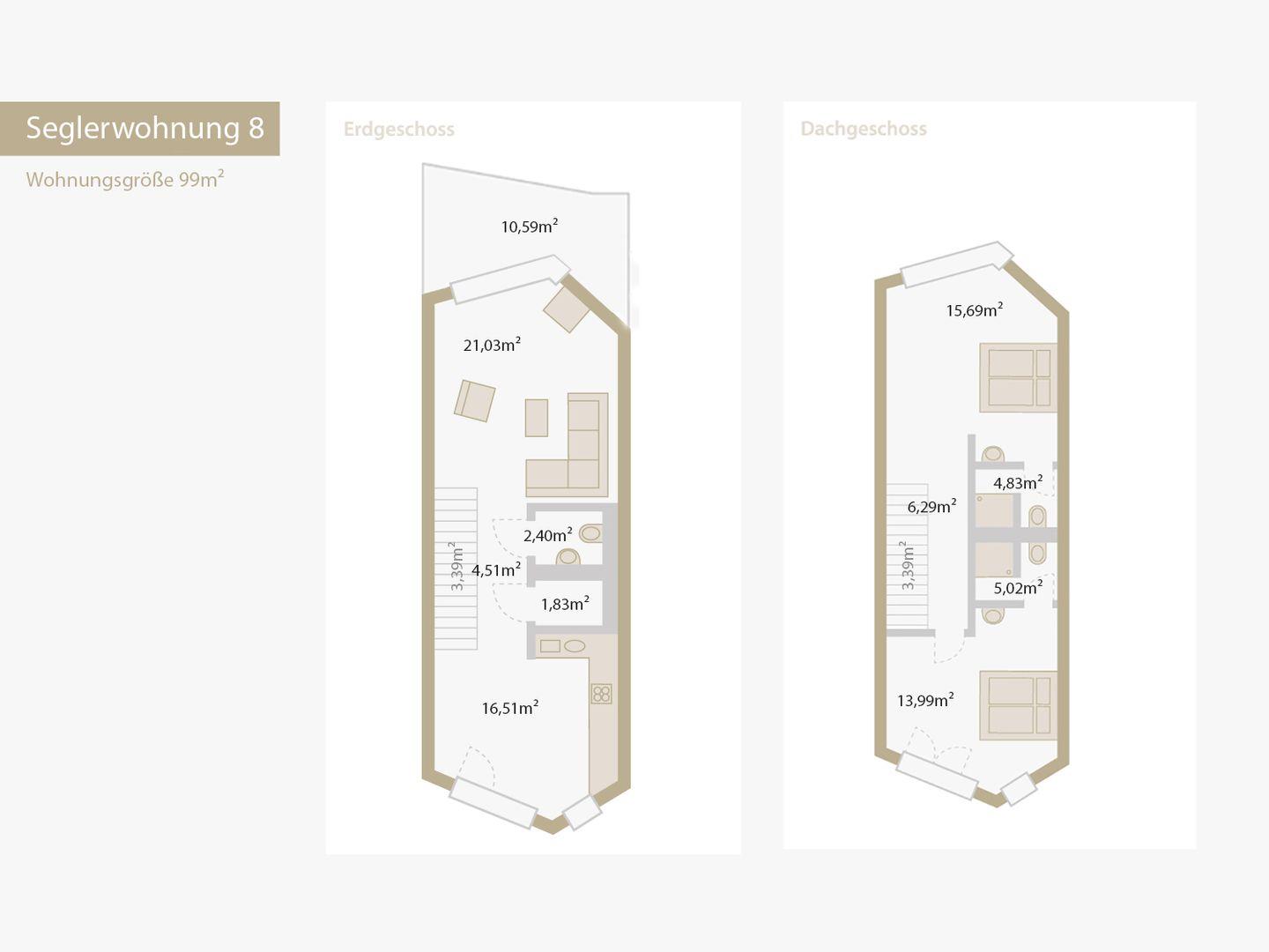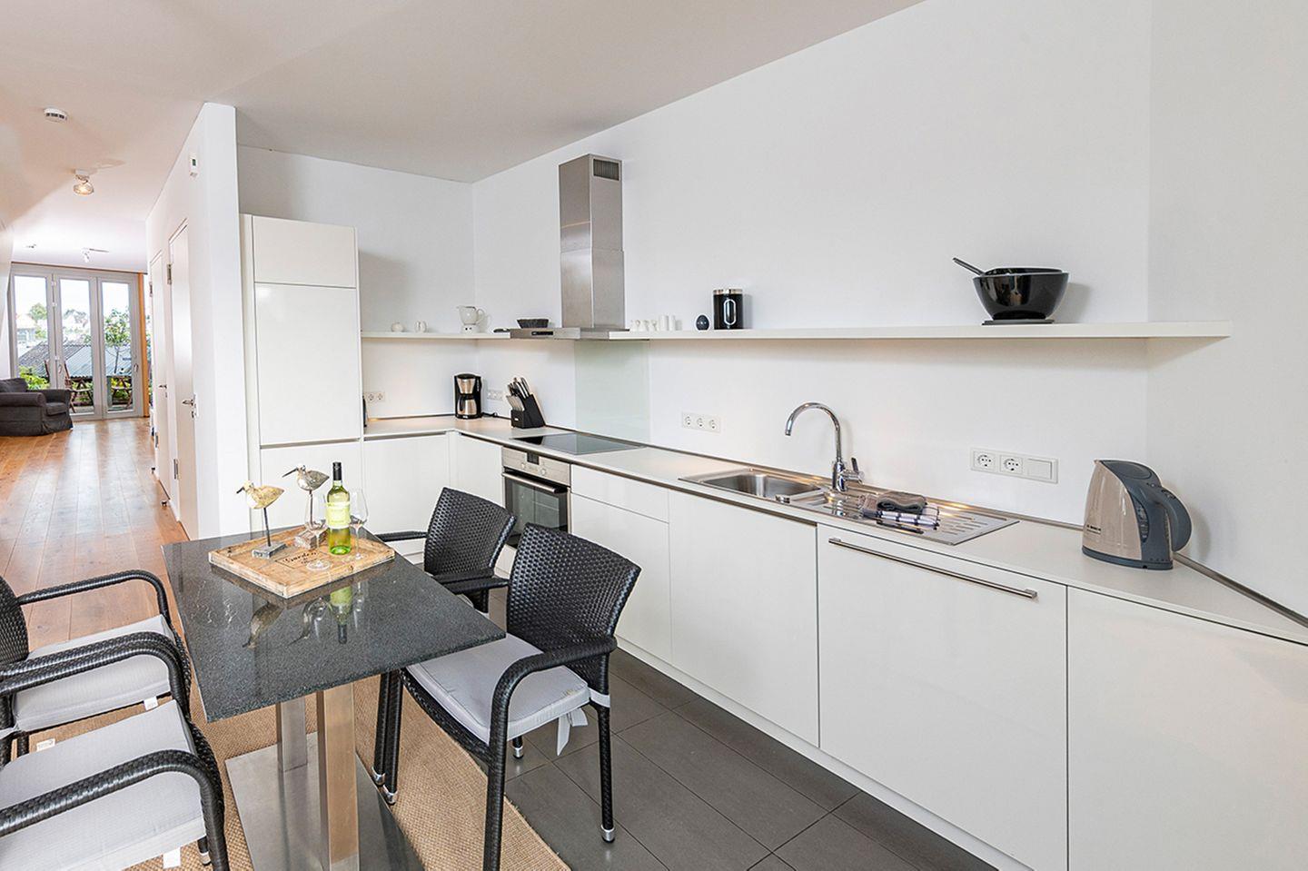 Auf ca. 102 m² finden bis zu 4 Personen bequem Platz. Die Wohnung verfügt über zwei Schlafzimmer, Fußbodenheizung, eine voll ausgestattete Küche, zwei moderne Duschbäder (en suite), ein zusätzliches WC, einen Balkon mit Blick auf die Schlei, und ein geräumiges Wohnzimmer. Hier erwarten Sie Annehmlichkeiten wie Spülmaschine, Trockner und Waschmaschine für Ihren Komfort.