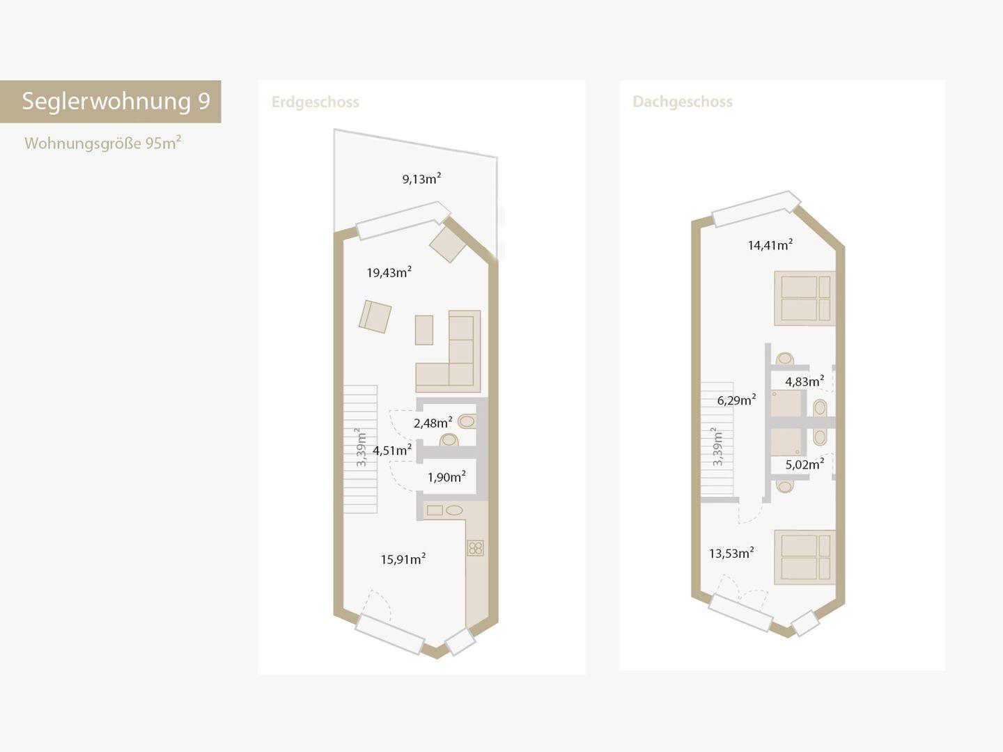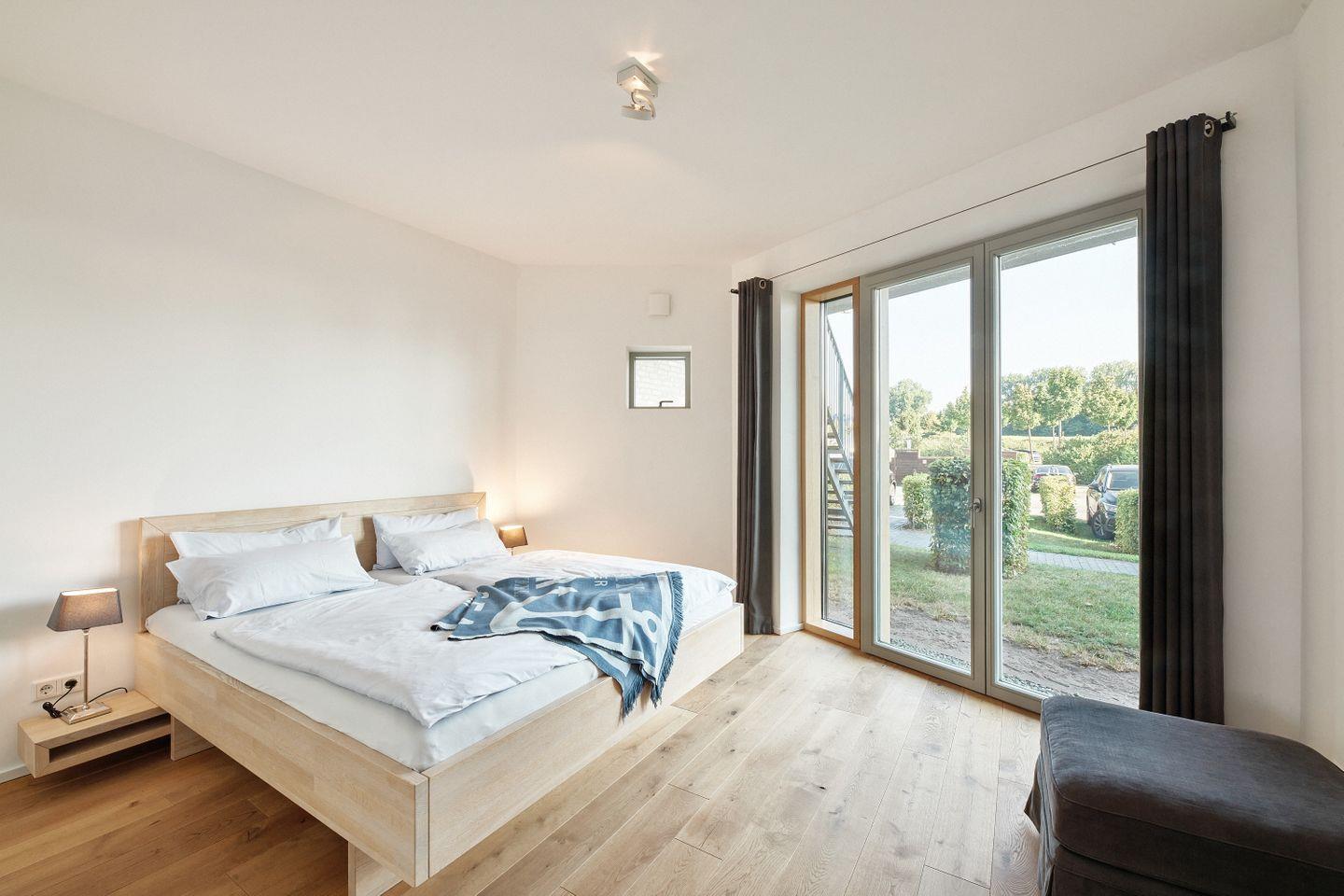 Auf ca. 98 m² finden bis zu 4 Personen bequem Platz. Die Wohnung verfügt über zwei Schlafzimmer, Fußbodenheizung, eine voll ausgestattete Küche, zwei moderne Duschbäder (en suite), ein zusätzliches WC, einen Balkon mit Blick auf die Schlei, und ein geräumiges Wohnzimmer. Hier erwarten Sie Annehmlichkeiten wie Spülmaschine, Trockner und Waschmaschine für Ihren Komfort.