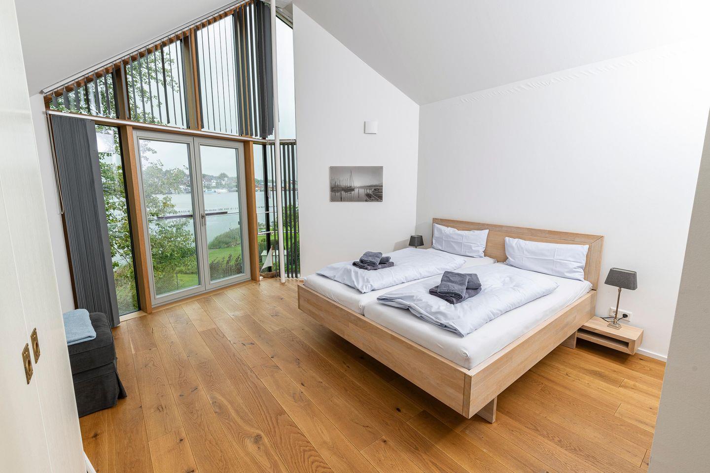 Genießen Sie den atemberaubenden Ausblick durch die Atelierverglasung auf die Schlei und Kappeln, entspannen Sie vor dem Kamin im Wohnbereich mit Blick auf das Wasser. Die Wohnung ist stilvoll und edel mit skandinavischen Akzenten eingerichtet.