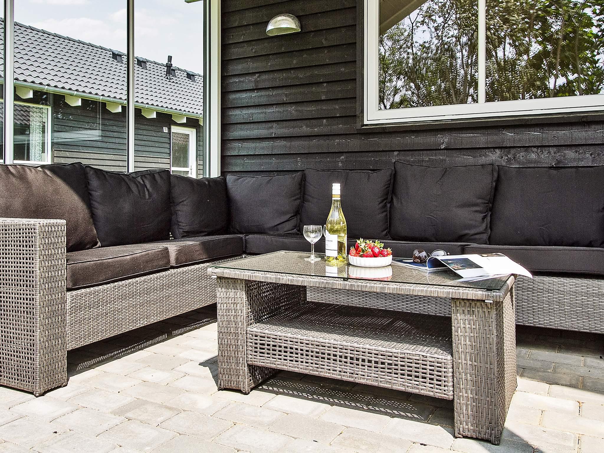 med glasvægge afskærmet terrasse med loungemøbler til de hyggelige