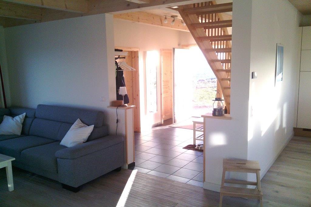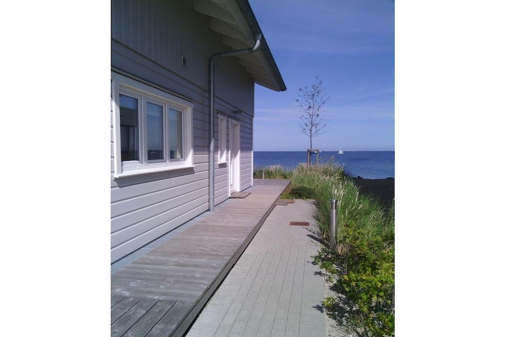 Das Ferienhaus, Baujahr 2013, mit Carport und umlaufender Holzterrasse steht erhöht auf der Nordmole des Yachthafens im OstseeResort Olpenitz (ehem. Name: Port Olpenitz). Mit 1 1/2 Geschossen und sehr vollständiger Ausstattung bietet das gemütliche Holzhaus angenehmen Platz für 5 Personen. Der besonders für Kinder geeignete und nach Süden orientierte Strand mit feinem Sand liegt von der Mole geschützt nur 50 m vom Haus entfernt. Dort kann man im klaren Ostseewasser schwimmen, Boote zu Wasser, Drachen steigen oder einfach nur die Seele baumeln lassen. Oder Sie nehmen das Fernglas und beobachten die Vögel im Schutzgebiet gegenüber. Bauarbeiten im Umfeld sind möglich, sprechen Sie uns gerne diesbezüglich an.