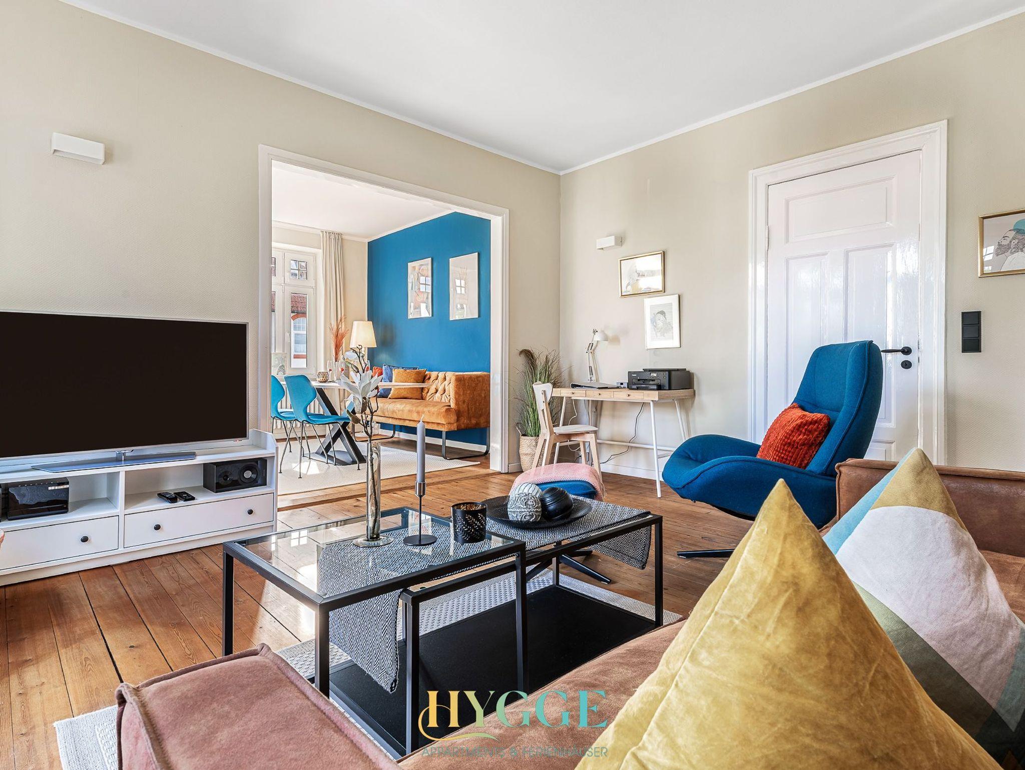 Die Ferienwohnungen der Villa Hygge zeichnen sich durch ein historisches Ambieten, wie z.B. mit hohen Decken und Holzfussboden aus, sind aber 2022 modern eingerichtet worden. Dabei wurde sehr darauf geachtet, die Wohnungen gemütlich (hygge) und trotzdem zeitgemäß einzurichten. Eine Ferienwohnung in der Villa Hygge ist gemütliches wohnen, zentral in Kappeln gelegen und umgeben von einer Aura des 19. Jahunderts. Dazu gehören zu den Wohnungen ein großer Garten mit Weber Grill, sowie ein Saunawagen. Die Bäder sind neu und modern eingerichtet.