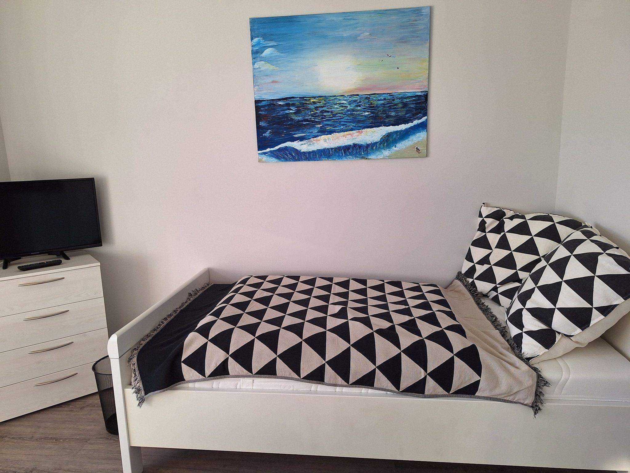 Erholsamen Schlaf finden Sie im 1x2m großen Bett auf einer sehr bequemen, hochwertigen Matratze. Die extrabreite Dusche ist mit zusätzlichen Seitendüsen ausgestattet. Nachdem Sie die drei Eingangsstufen zur Haustür passiert haben, ist das Appartement ebenerdig.