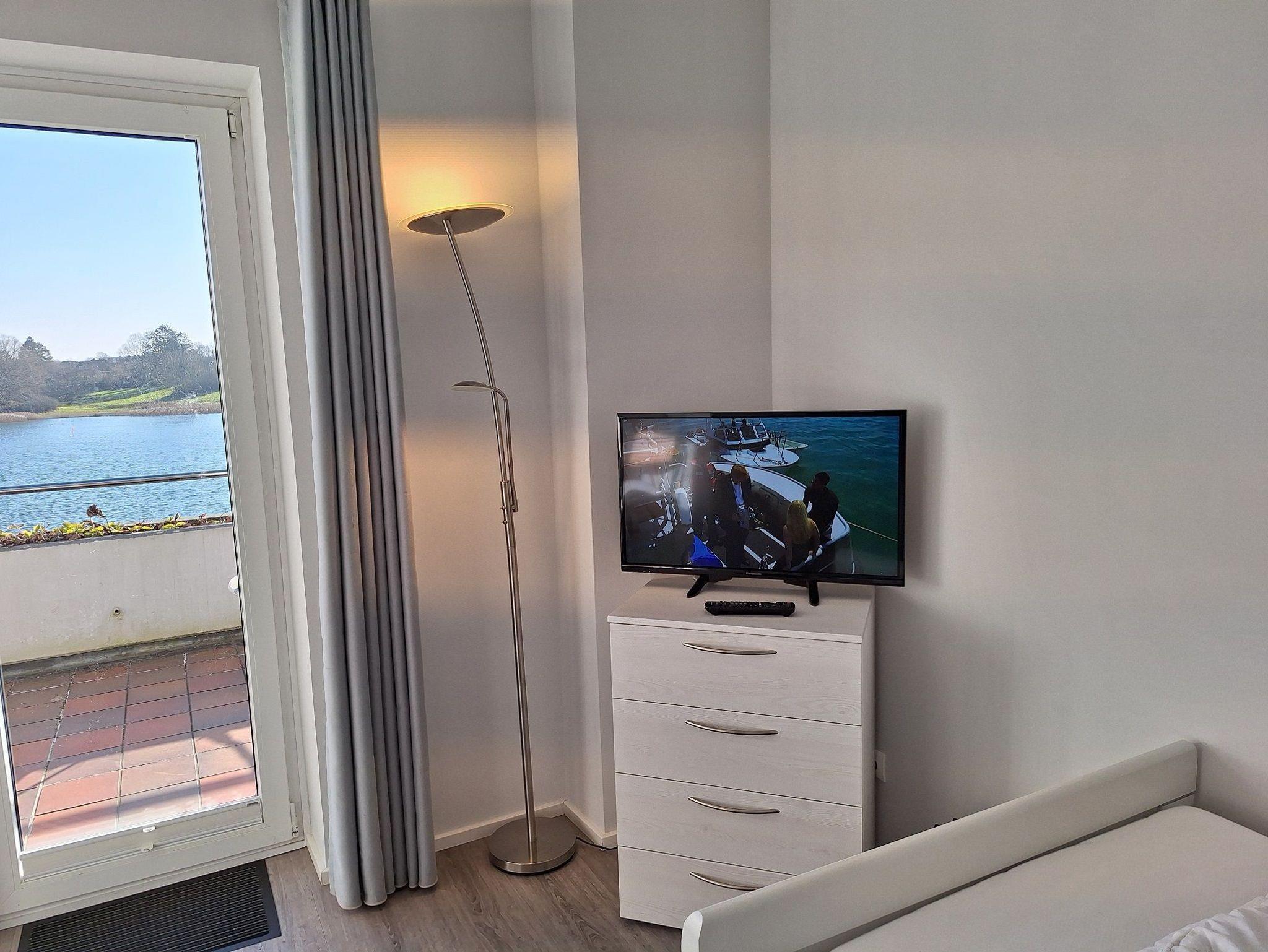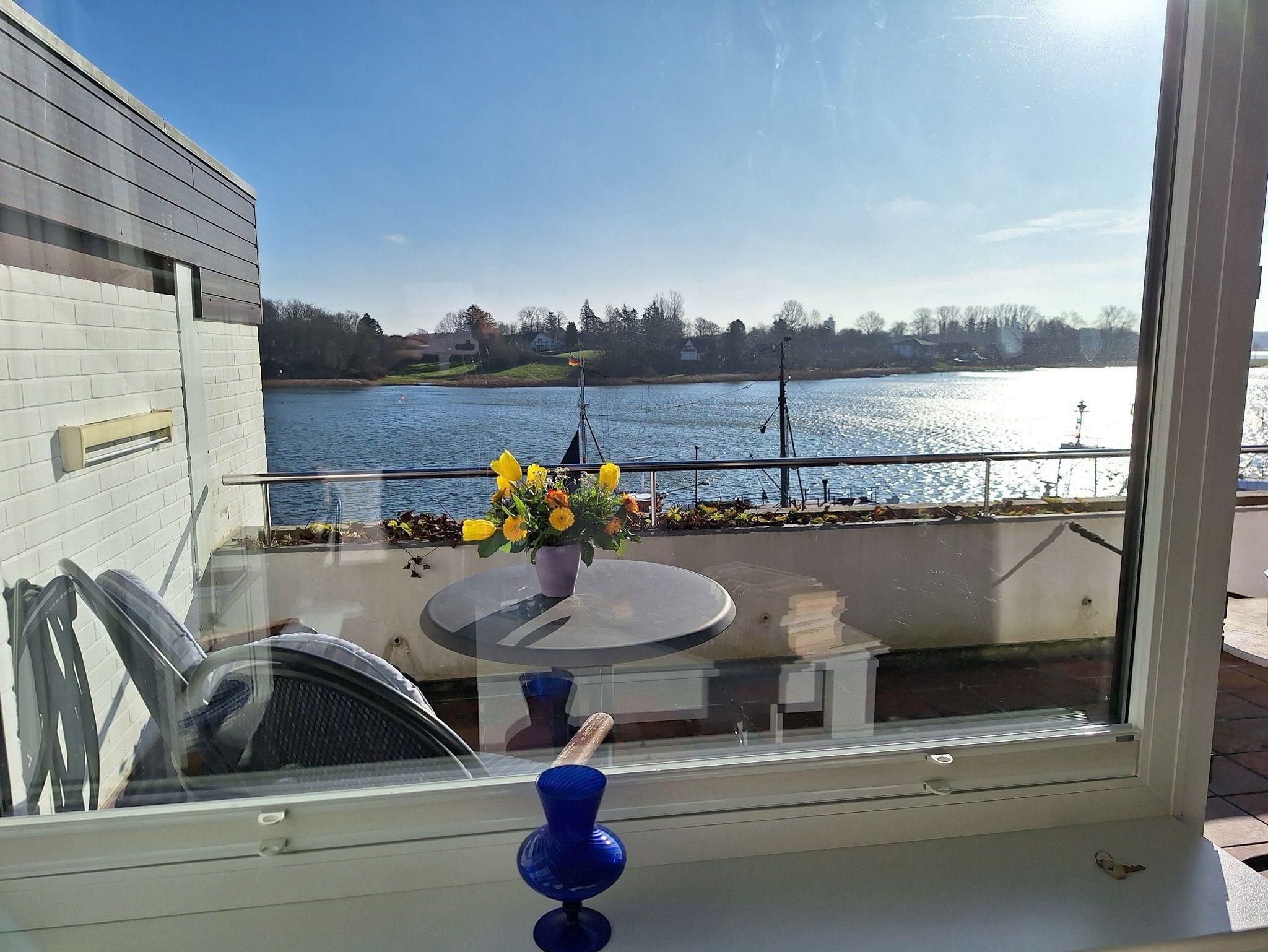 Genießen Sie herrliche Sonnenaufgänge über der Schlei, die Sie vom Frühstückstisch durch das große Panoramafenster beobachten können. Der großzügige Balkon lädt zum Essen und Entspannen ein. Bei starkem Sonneneinfall spendet eine elektrische Markise Schatten.