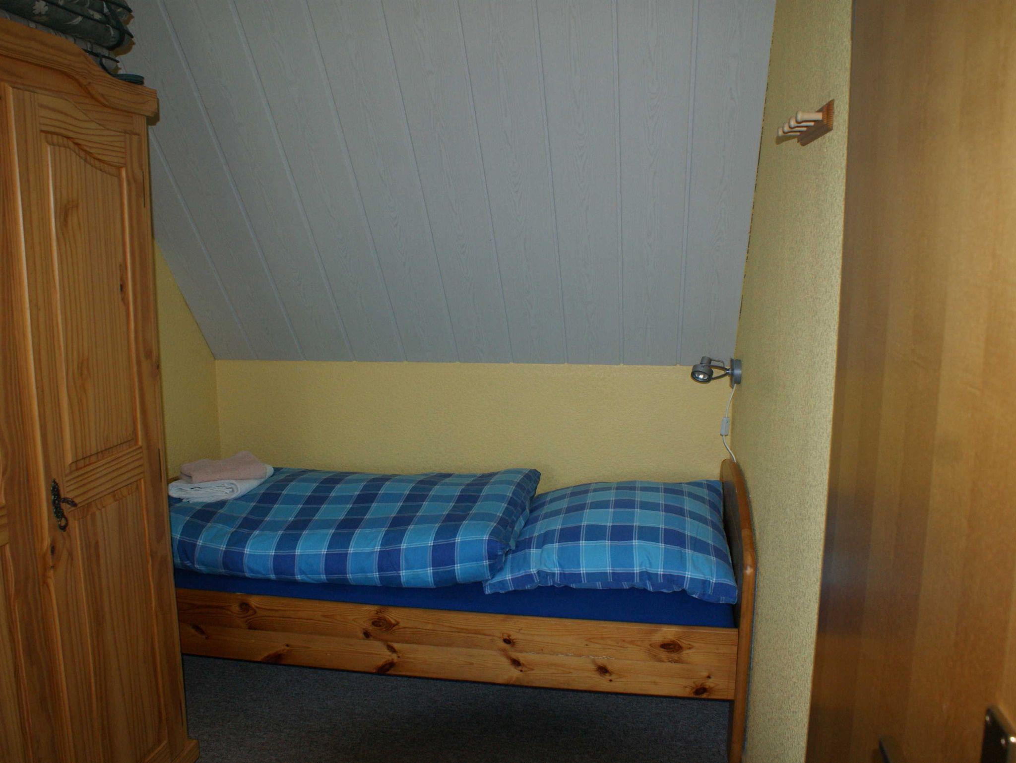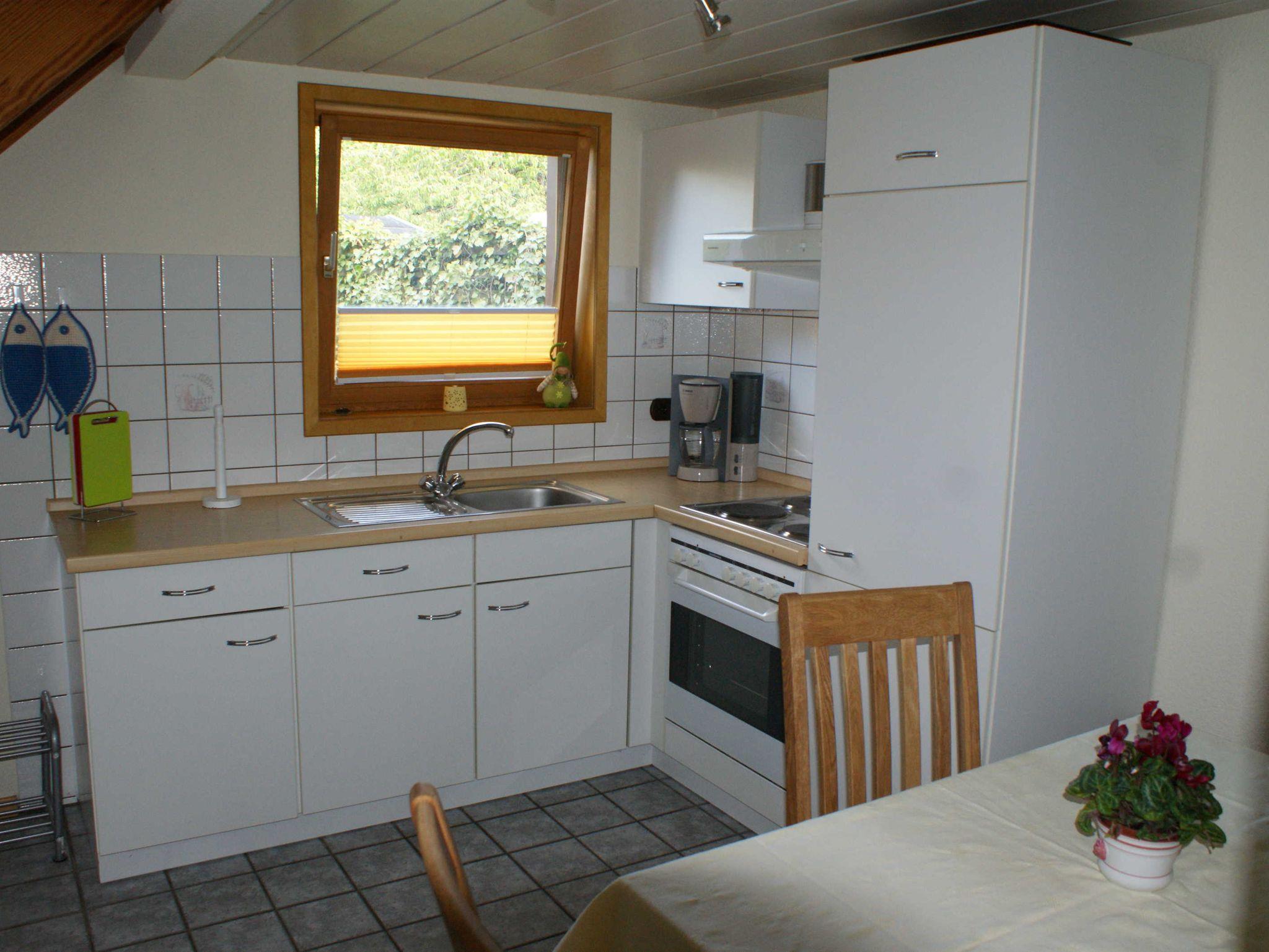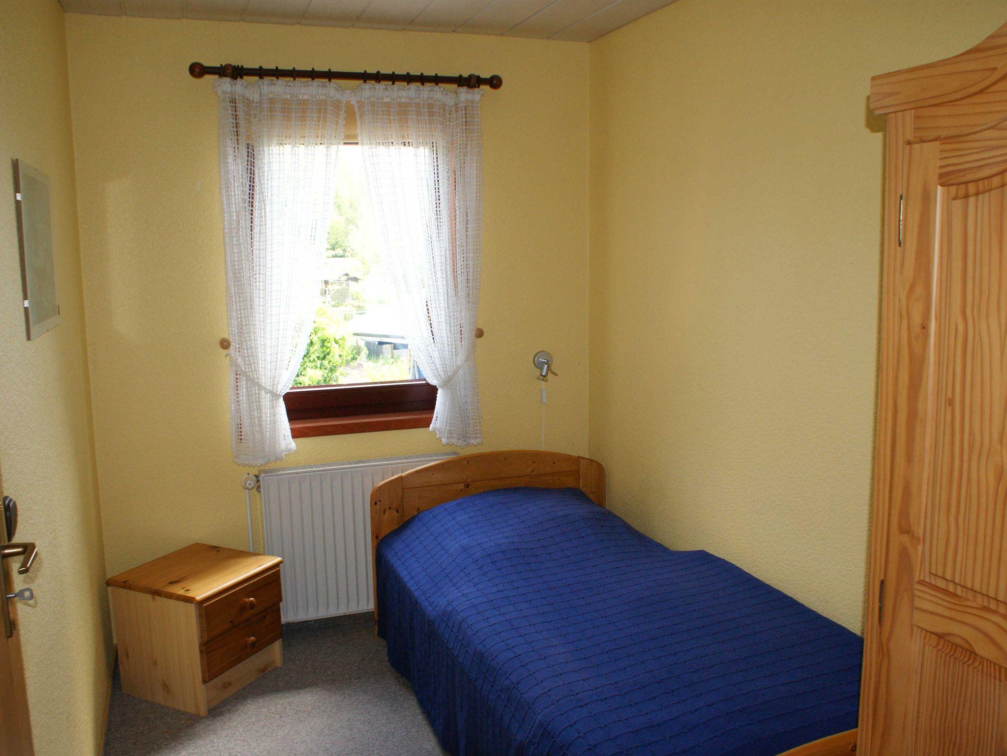 Gemütliches Ferienhaus (60 m²), wohnlich eingerichtet. 2 Schlafräume (1 x Doppelbett, 1 x 2 Einzelbetten), Wohnraum und Küche. Kinderreisebett vorhanden, Kabel-TV und Musikanlage. Sitzecke mit Gartenmöbeln und Grill. Freier Zugang zum Gäste W-LAN