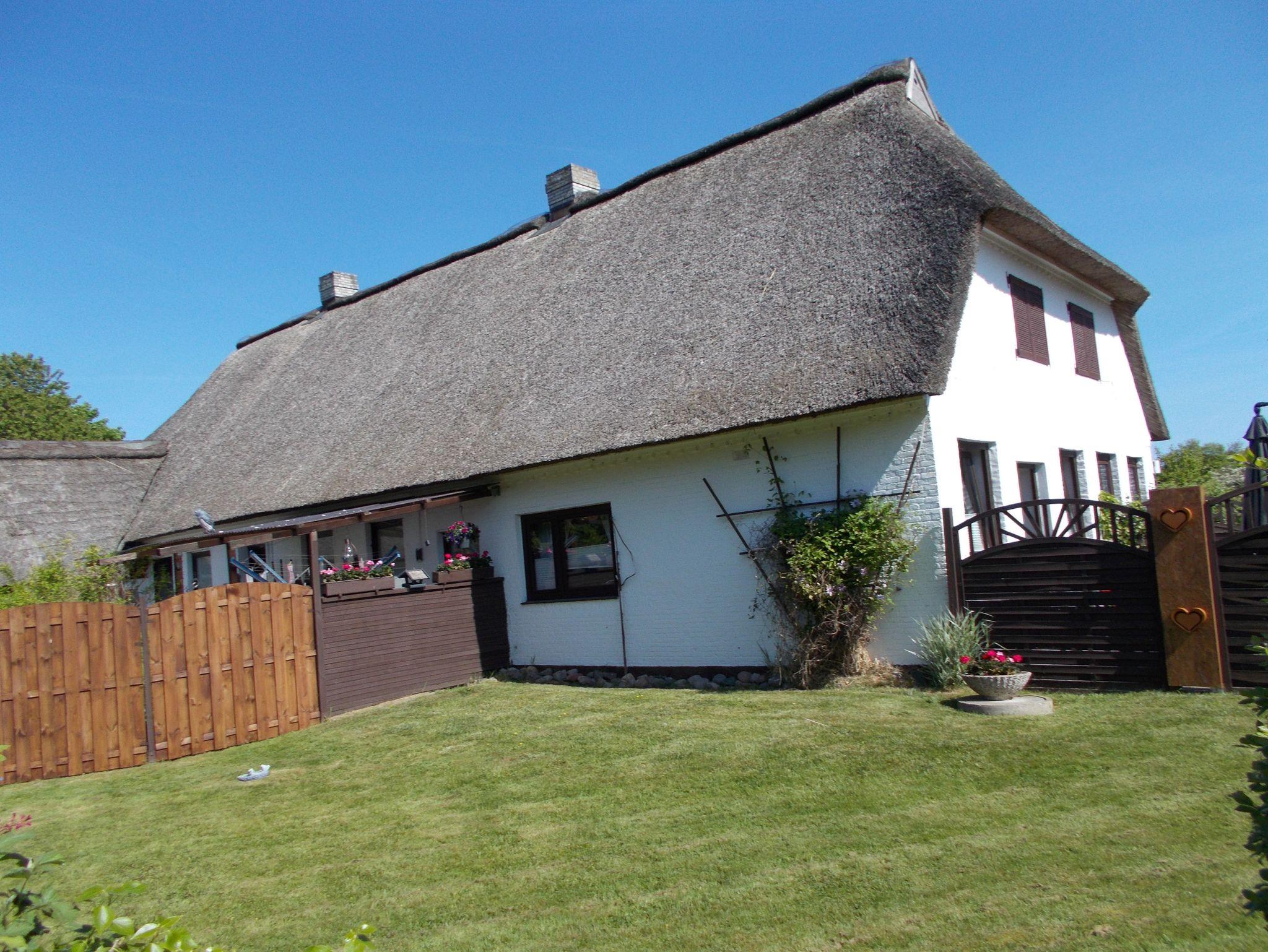 Unsere 65qm² große Erdgeschoßwohnung befindet sich in einem gepflegten,reetgedeckten Mehrfamilienhaus. Ruhig gelegen, bietet Ihnen unser komplett umzäuntes Haus alle Annehmlichkeiten für einen gelungenen Urlaub. Genießen Sie Ihren Urlaub auf der sonnigen, privat gehaltenen Terrasse mit Blick in den liebevoll angelegten, schönen großen Garten. Ihr sichtgeschützter Freisitz ist ausgestattet mit Tisch und Stühlen, sowie Liegen und einem Grill. Rauchen Sie bitte ausschließlich draußen, dort haben wir einen extra Bereich hierfür vorgesehen.