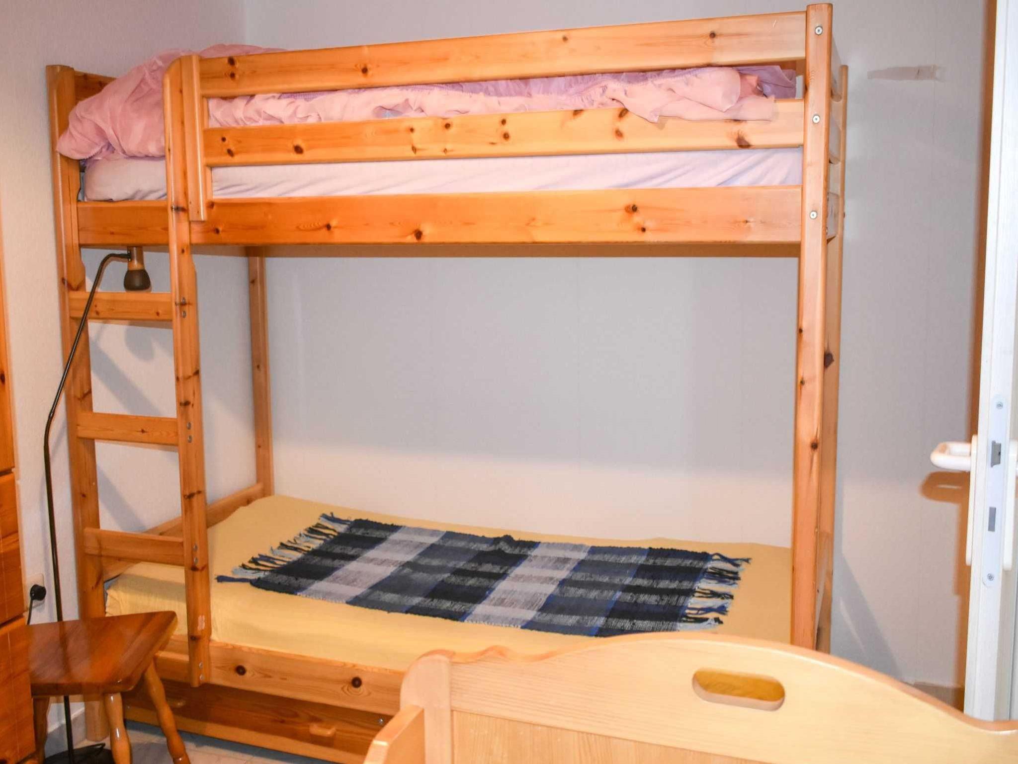 Die große Ferienwohnung (48qm) hat ein Kinderzimmer mit 2 Einzelbetten und eine Terrasse. Auch Sie ist mit einem Doppelbett und einer Couch mit Sitzreihe ausgestattet. Eine Küchenzeile mit Kaffeemaschine, Toaster und Wasserkocher sind ebenfalls vorhanden. Der Garten kann genutzt werden und Ihre Fahrräder können im Blockhaus untergestellt werden. Jede Ferienwohnung verfügt über ausreichend Sitzgelegenheiten.