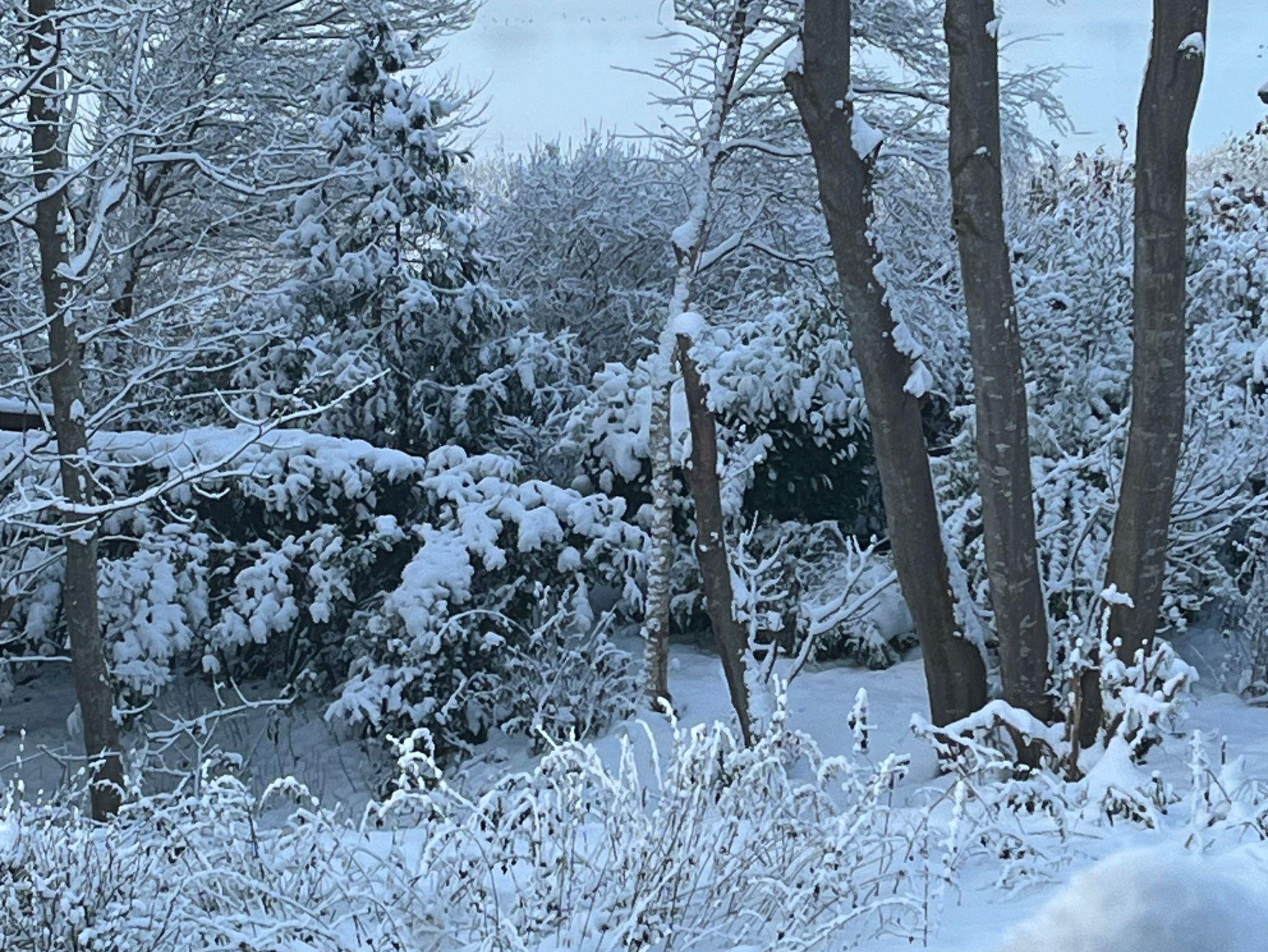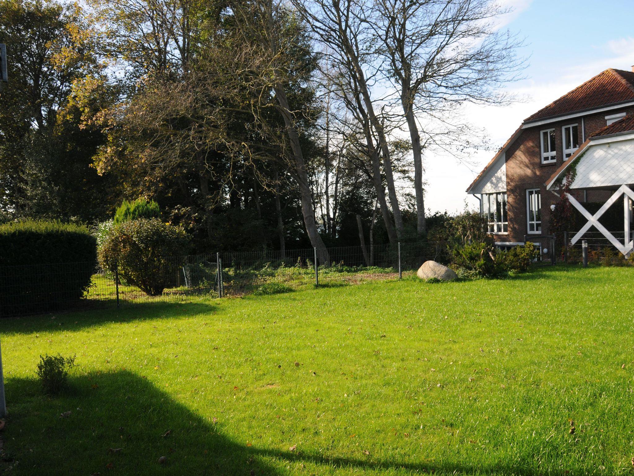 Der Garten wurde 2022 mit Bäumen und Rasenflächen neu angelegt. Er ist vollständig mit einem Zaun und mehreren Türen eingefriedet.