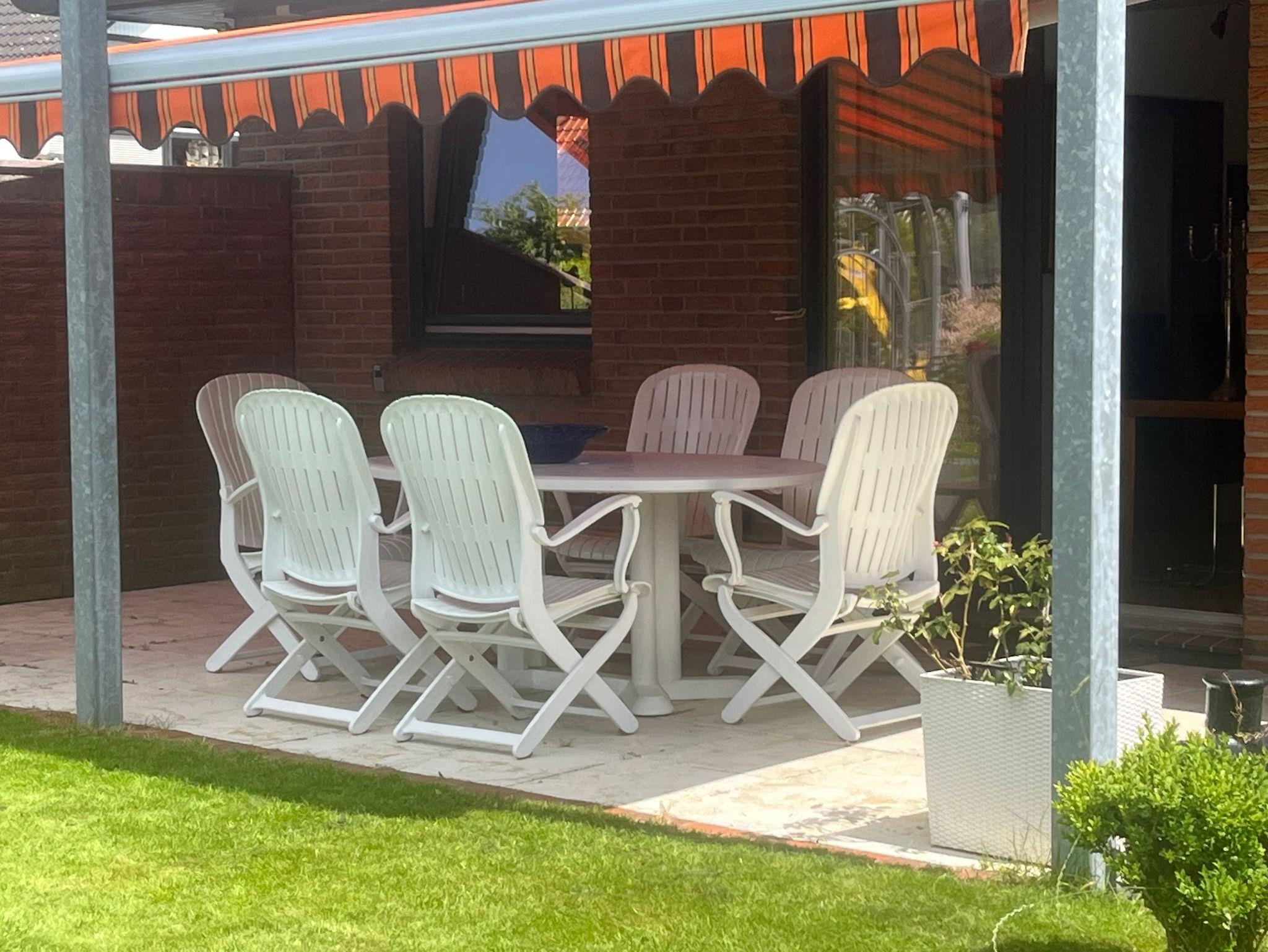 Nachmittags bis spät abends lädt die 2. nach Westen ausgerichtete Terrasse zum Sundowner ein. Hier haben Sie Blick auf die Schlei. Die elektrische Markise schützt Sie vor zu starker Sonne.